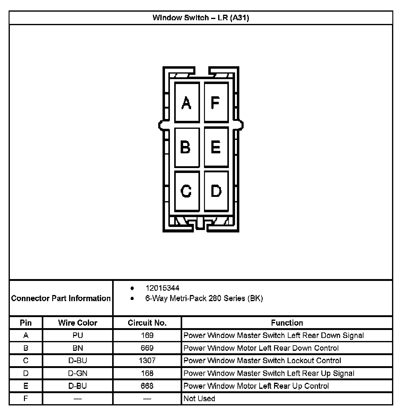 Window Switch - LR (With RPO Code A31):