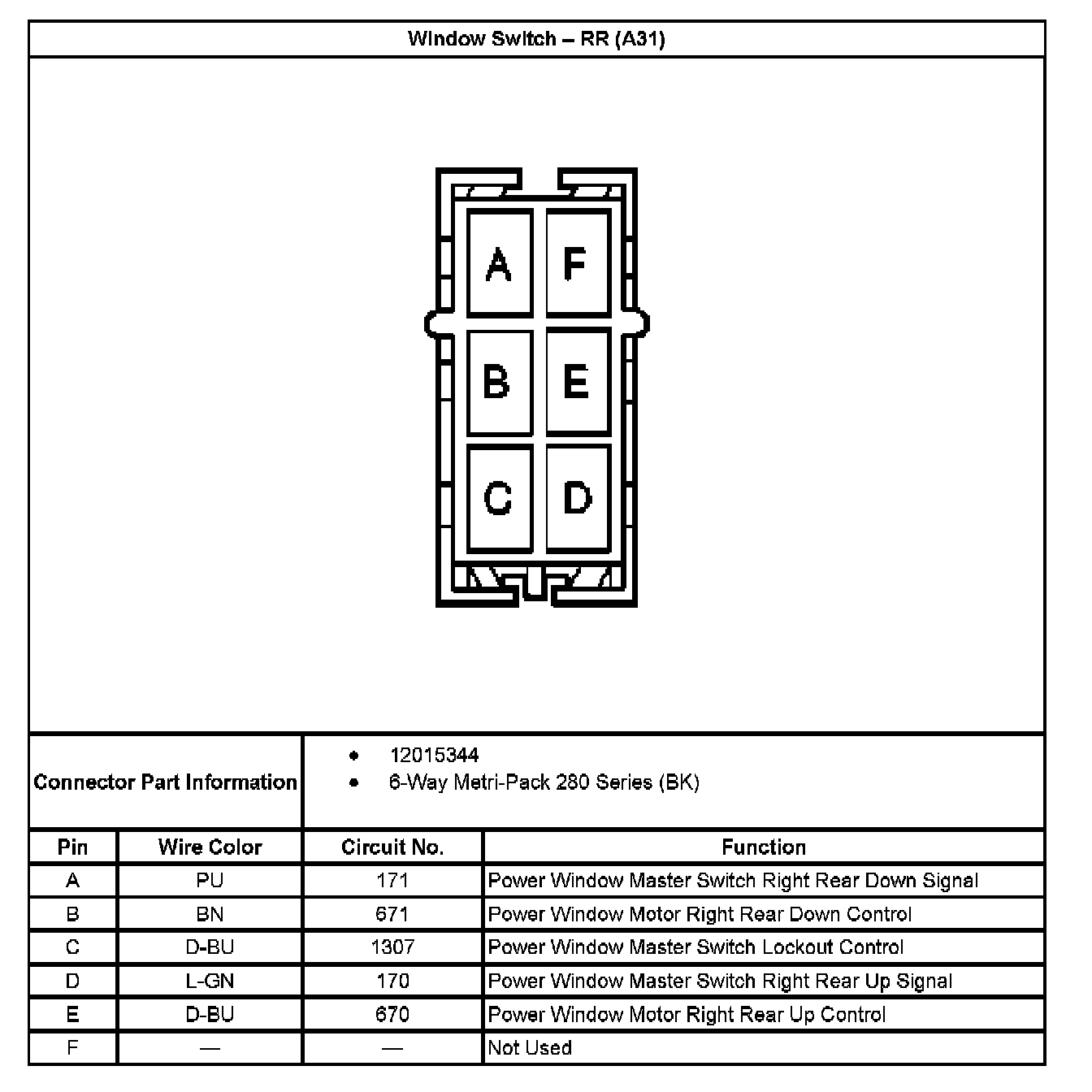 Window Switch - RR (With RPO Code A31):
