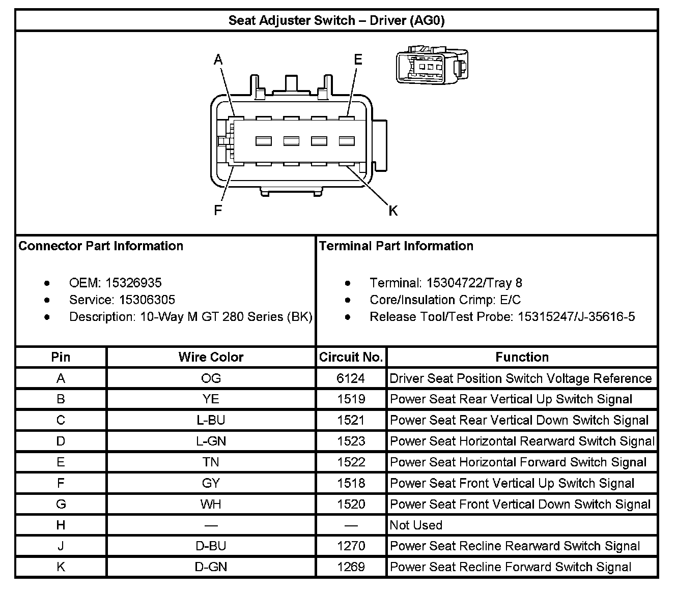 Seat Adjuster Switch - Driver (With RPO Code AG0):