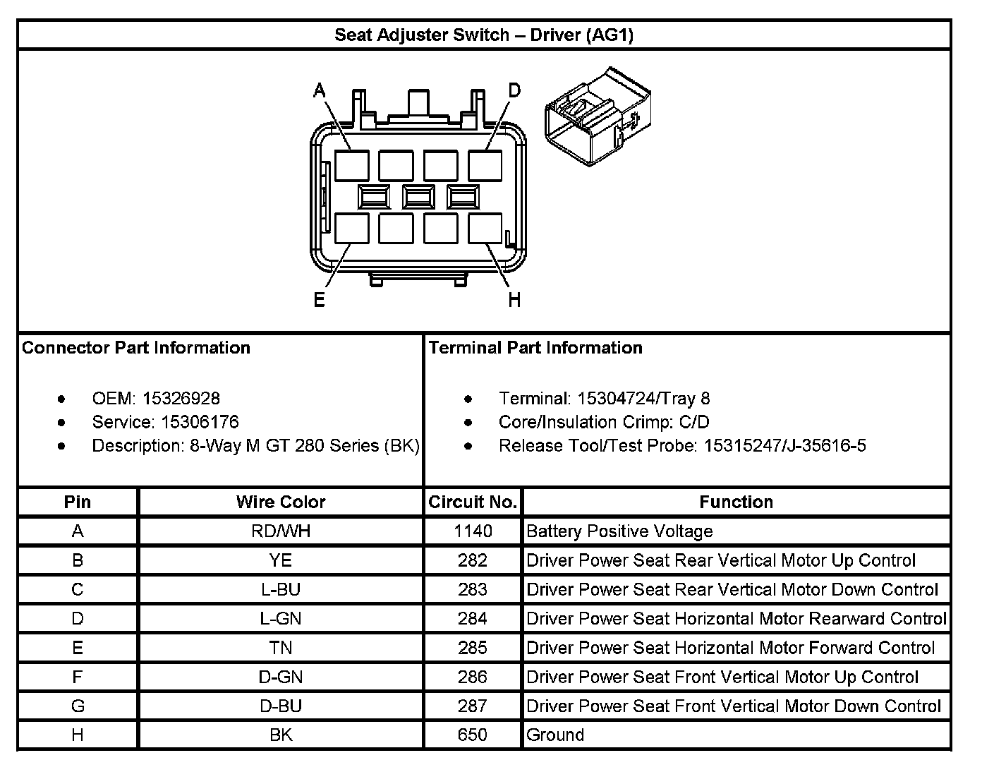 Seat Adjuster Switch - Driver (With RPO Code AG1):