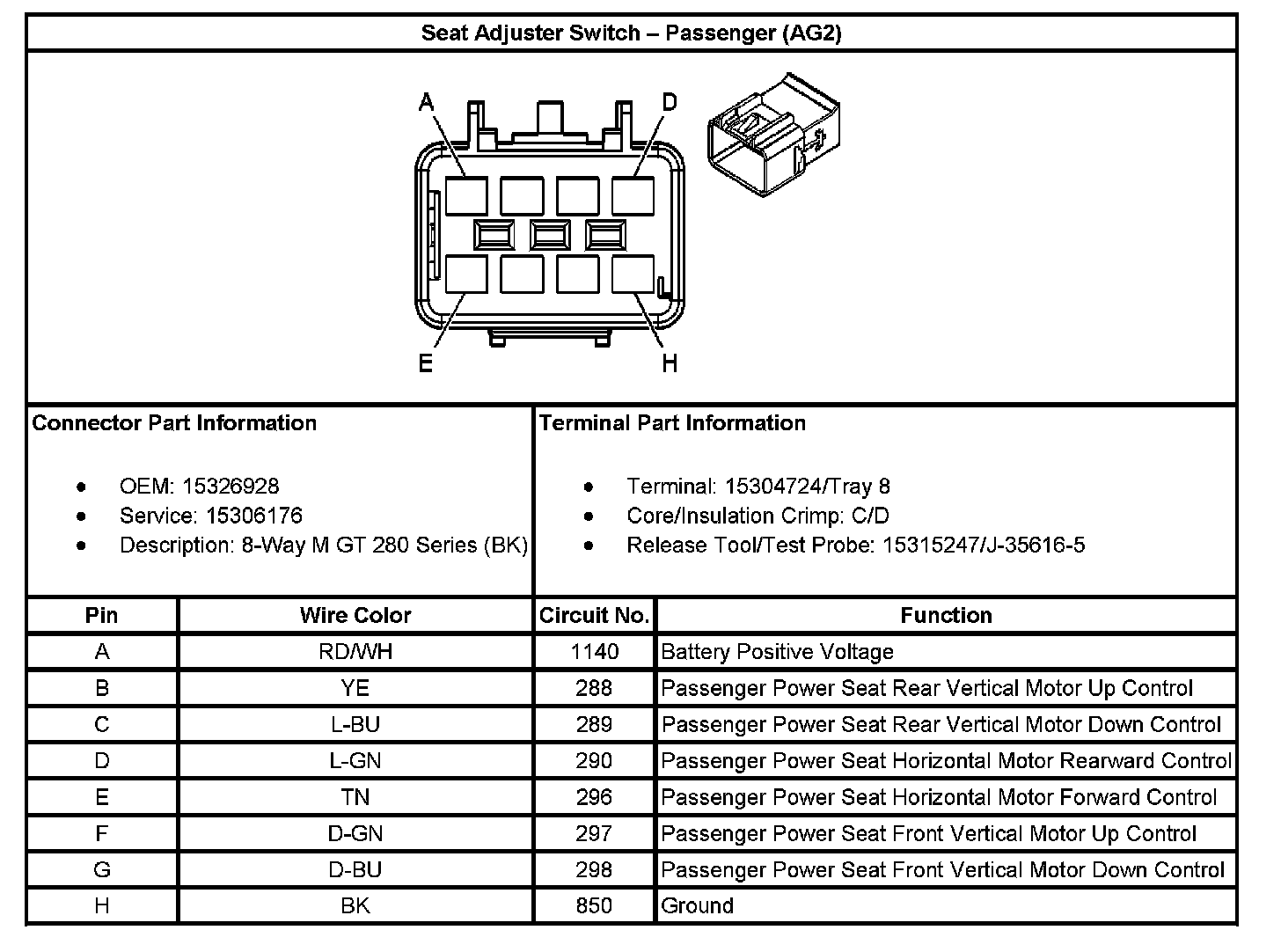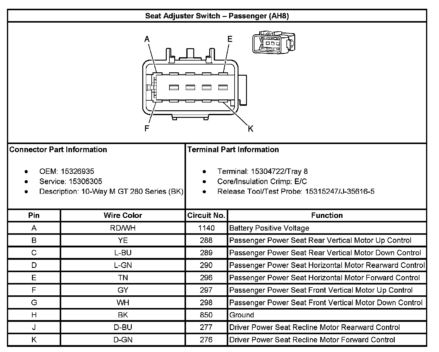 Seat Adjuster Switch - Passenger (With RPO Code AH8):