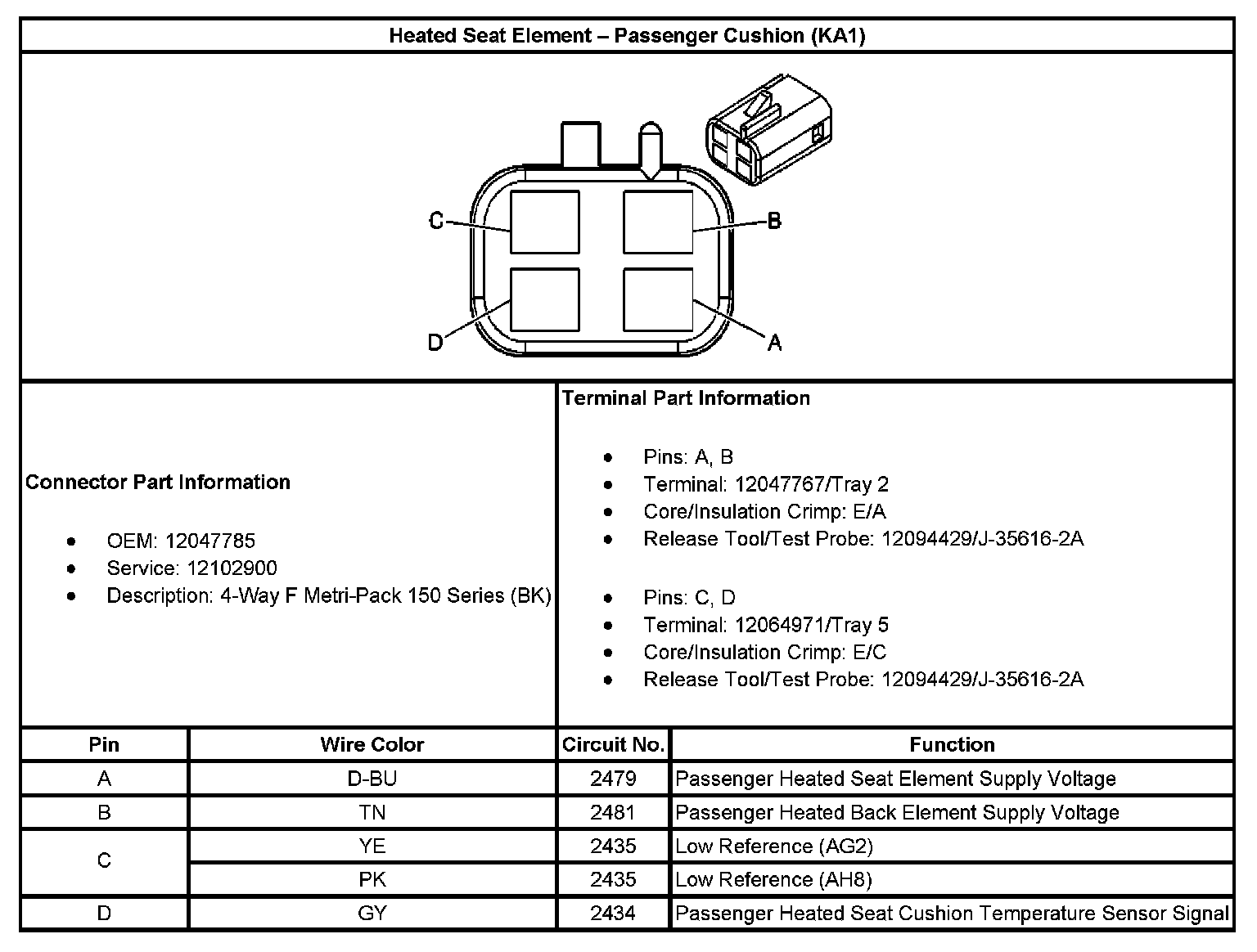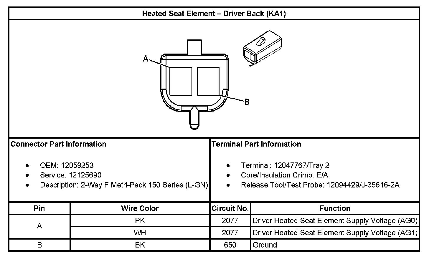 Heated Seat Element - Passenger Back (With RPO Code KA1):