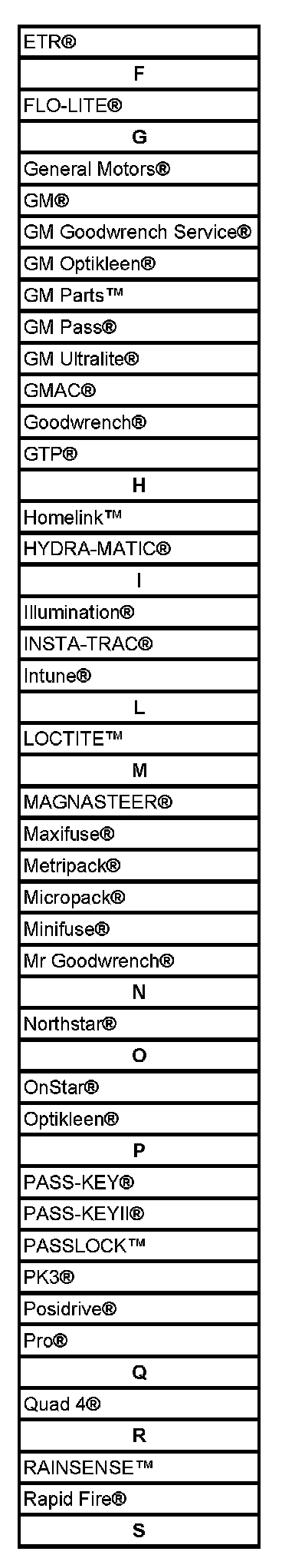 Listed are Registered Trademarks ((R)) or Non-Registered Trademarks (TM) which may appear in this service data.