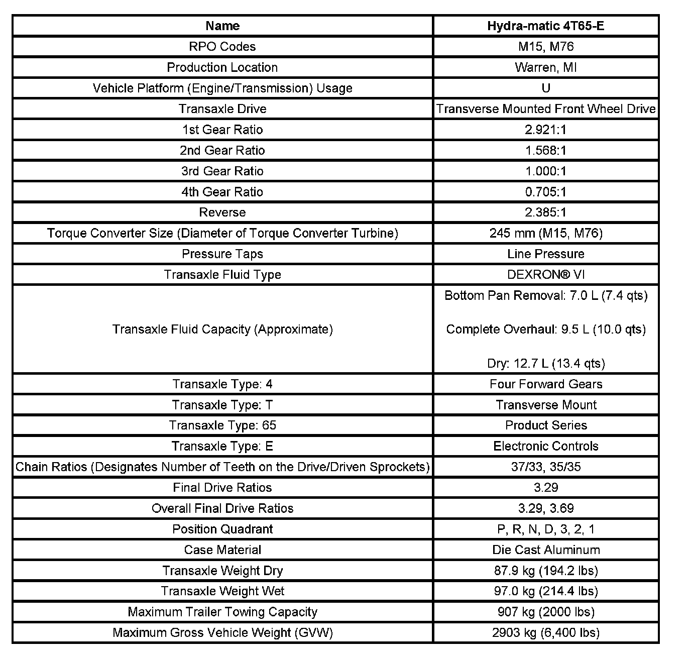 Transmission General Specifications: