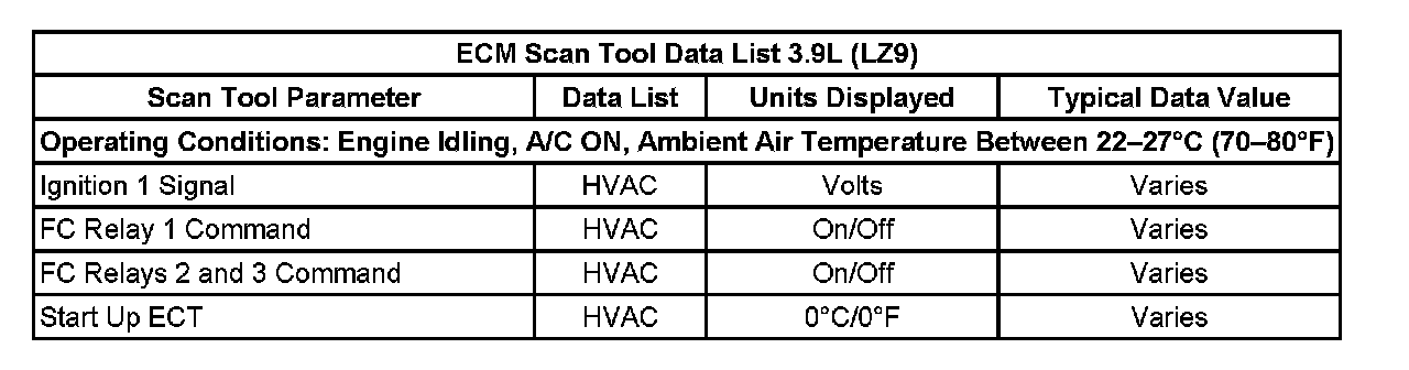 ECM Scan Tool Data List 3.9L (LZ9):