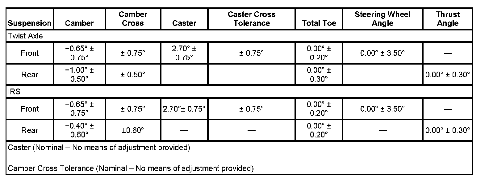 Wheel Alignment Specifications
