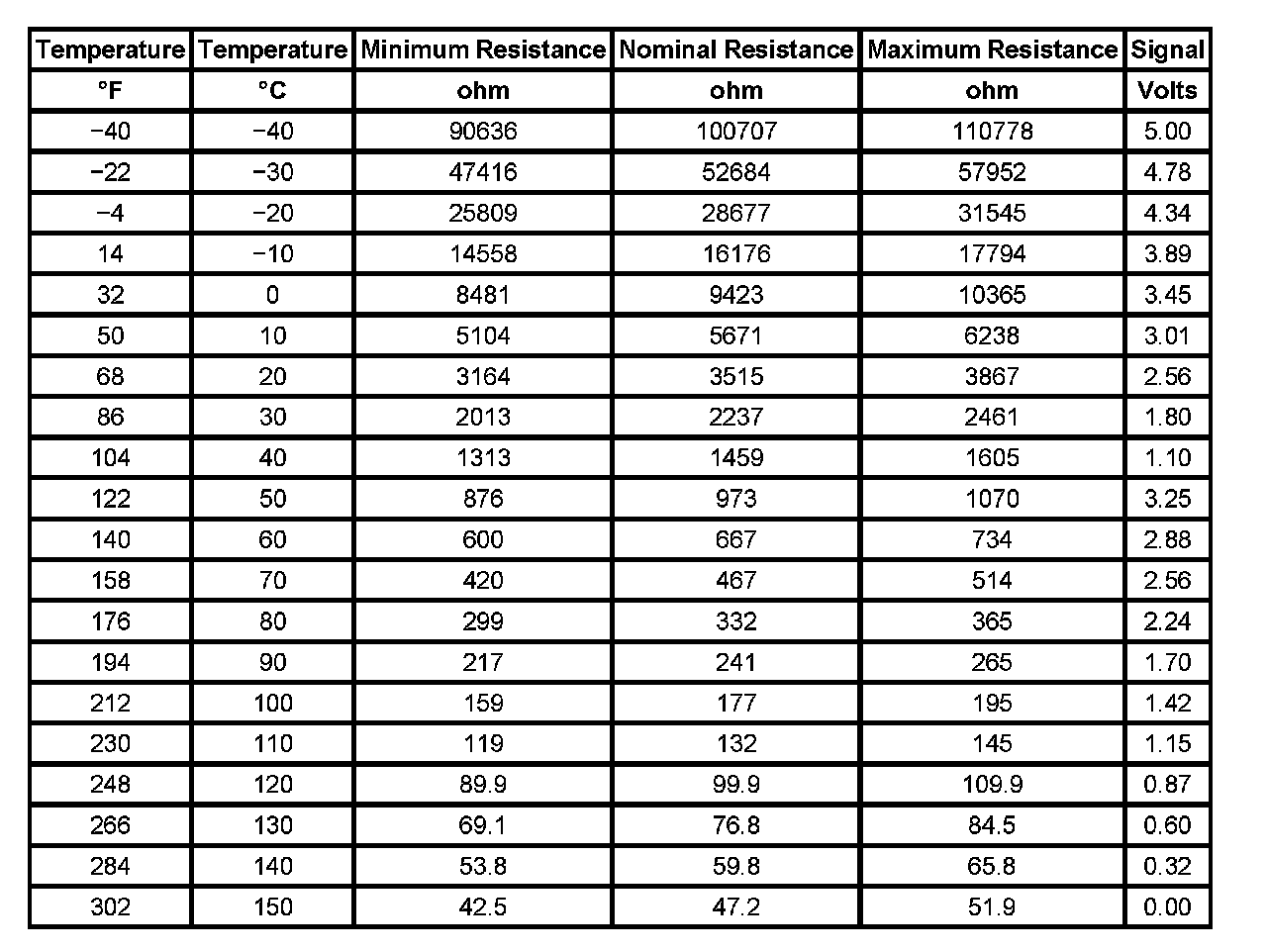 Transmission Fluid Temperature (TFT) Sensor Specifications: