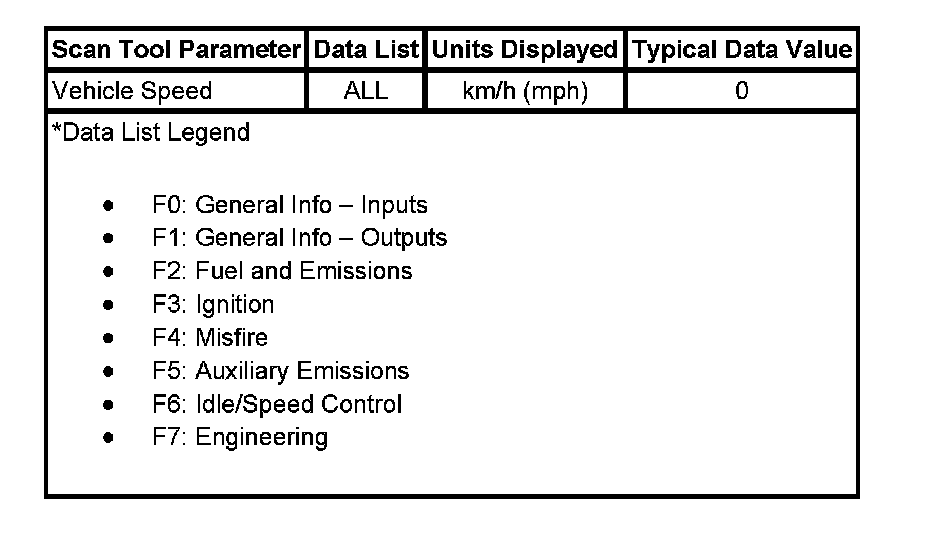 Only the parameters listed below are used in this manual for diagnosing. If a scan tool displays other parameters, the values are not recommended by General Motors for use in diagnosis.