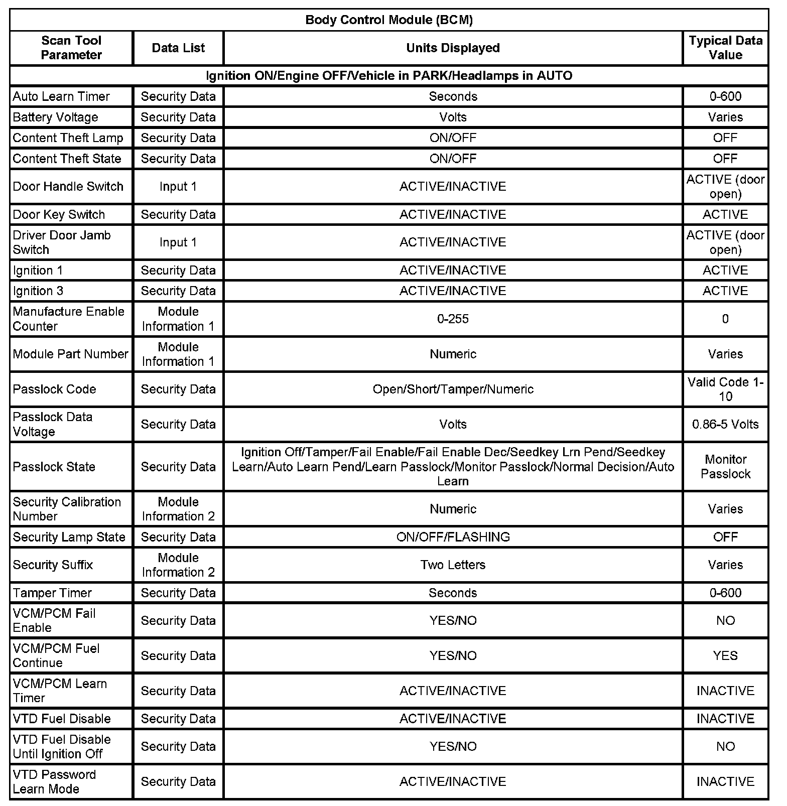 Body Control Module (BCM):