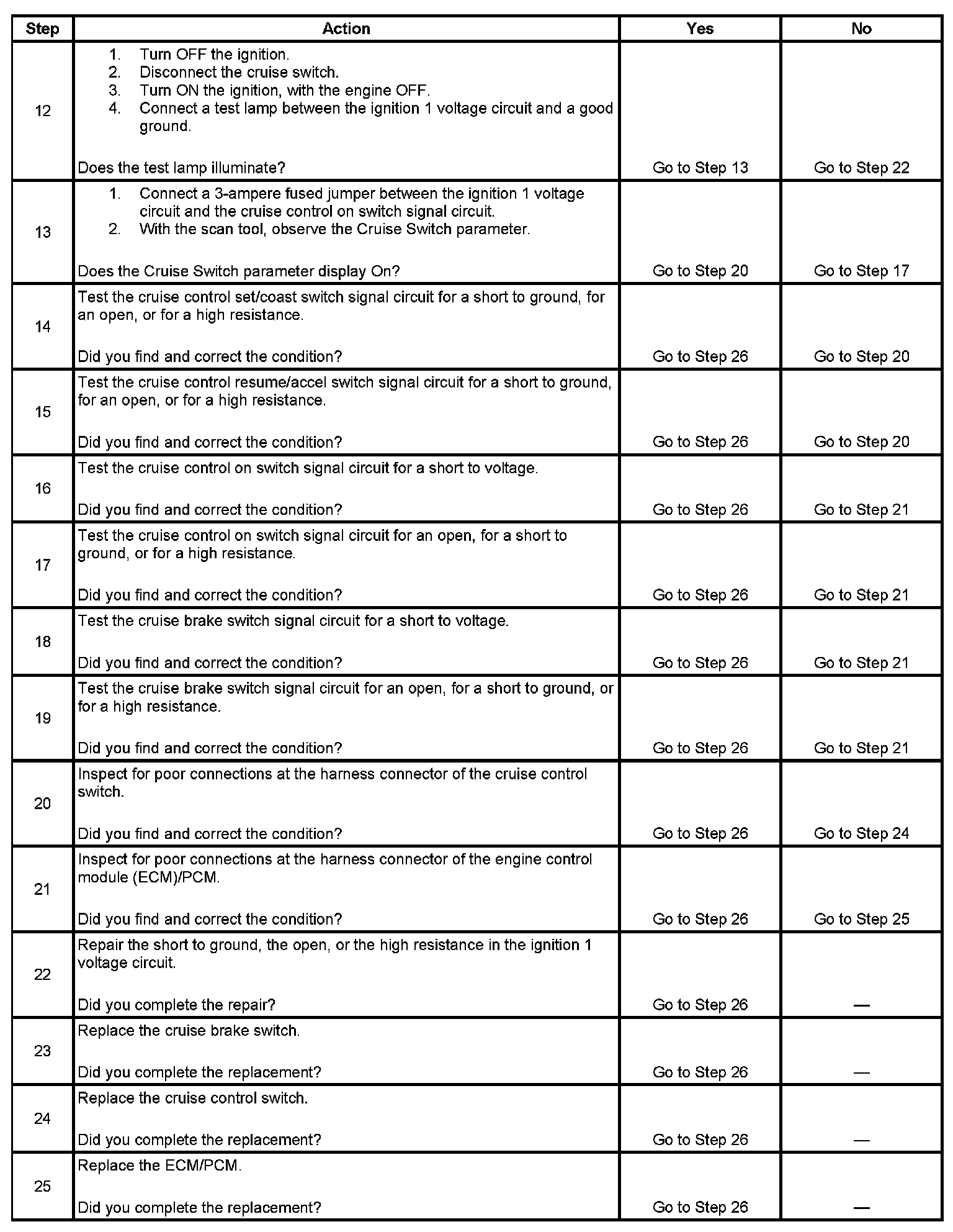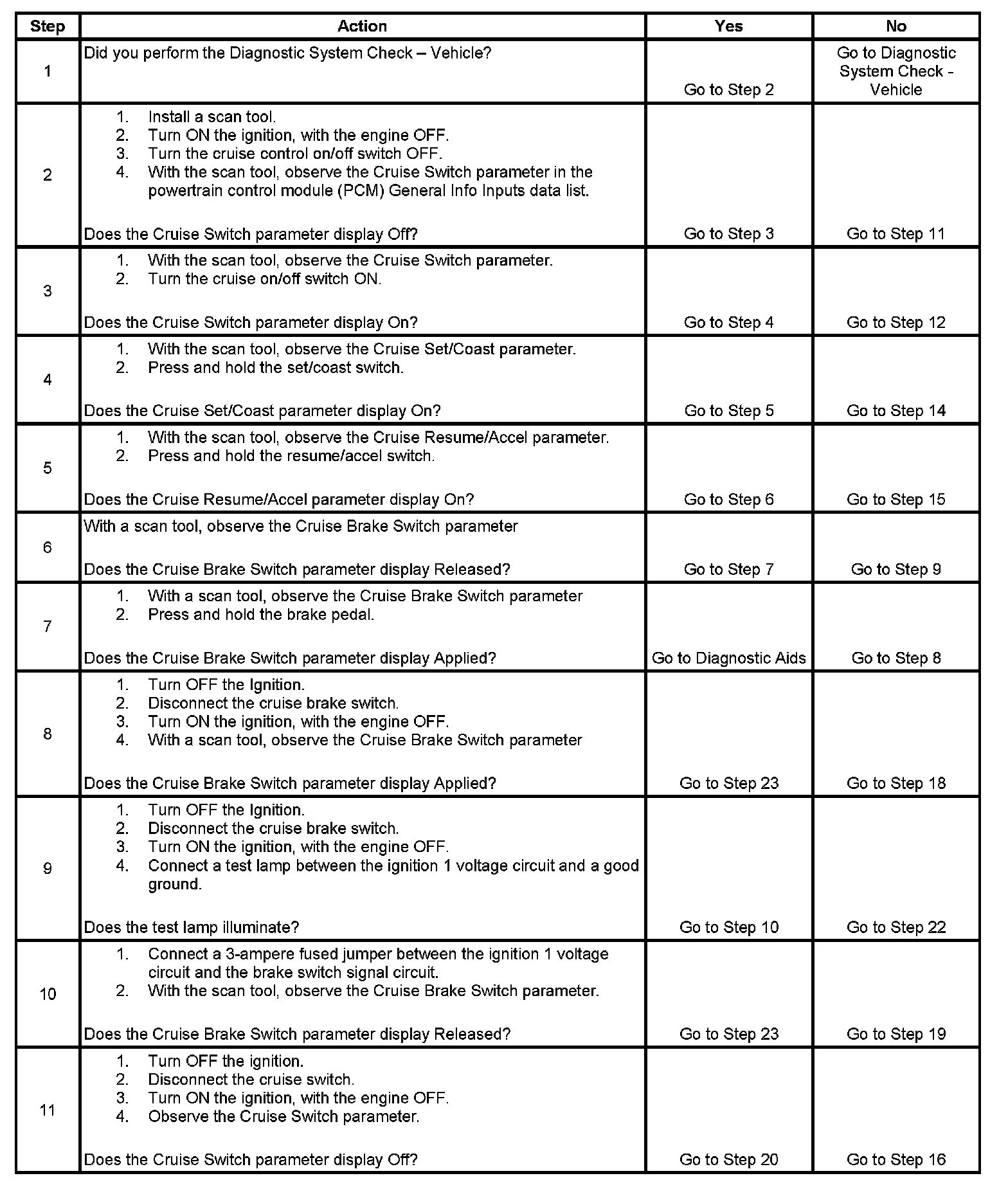 3. Observe the cruise set/coast and cruise resume/accel parameters in the scan tool PCM General Info Inputs data list while rotating the steering wheel to both stops and pressing and holding the steering wheel control switches. This will eliminate the possibility of a internally open or shorted inflatable restraint steering wheel module coil.