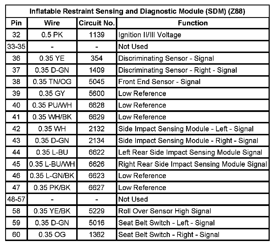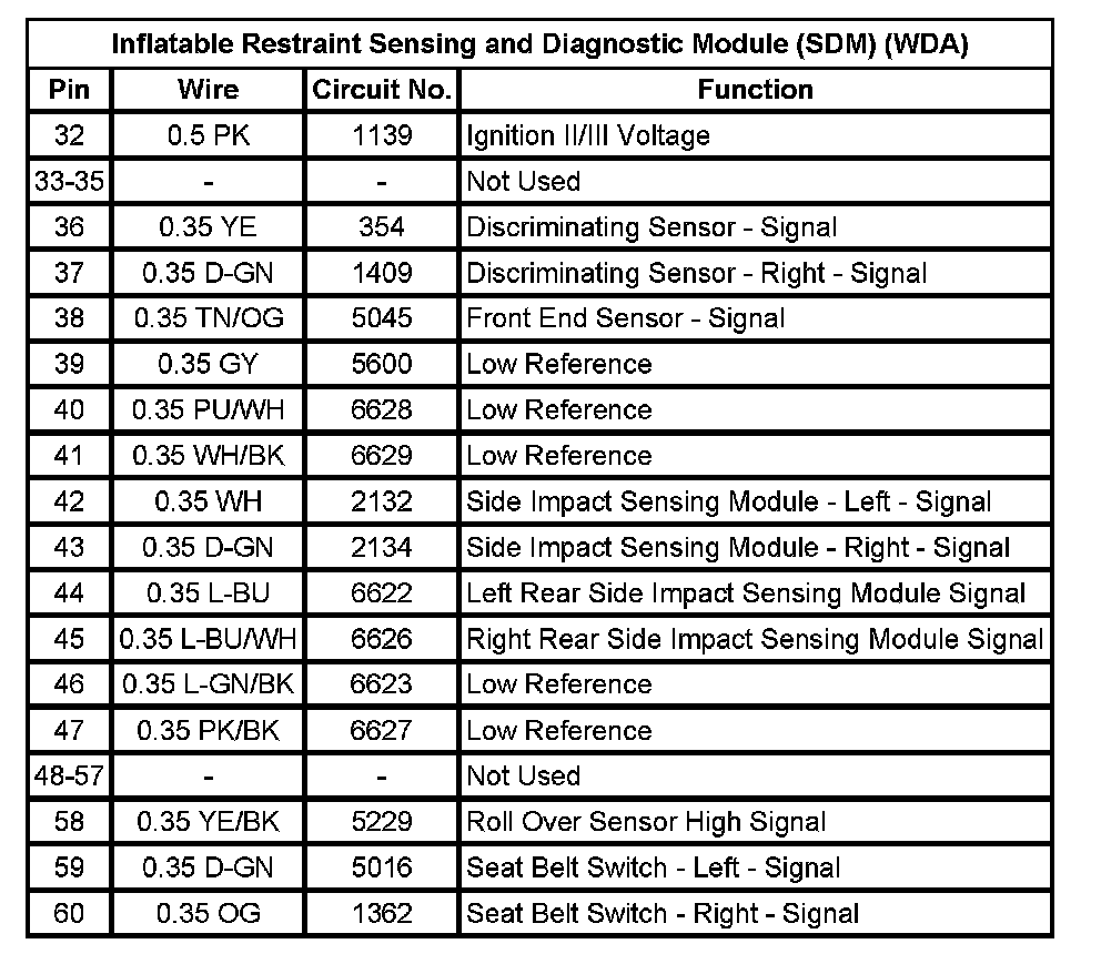 Inflatable Restraint Sensing And Diagnostic Module (SDM) (WDA) (Pin 32 To 60):