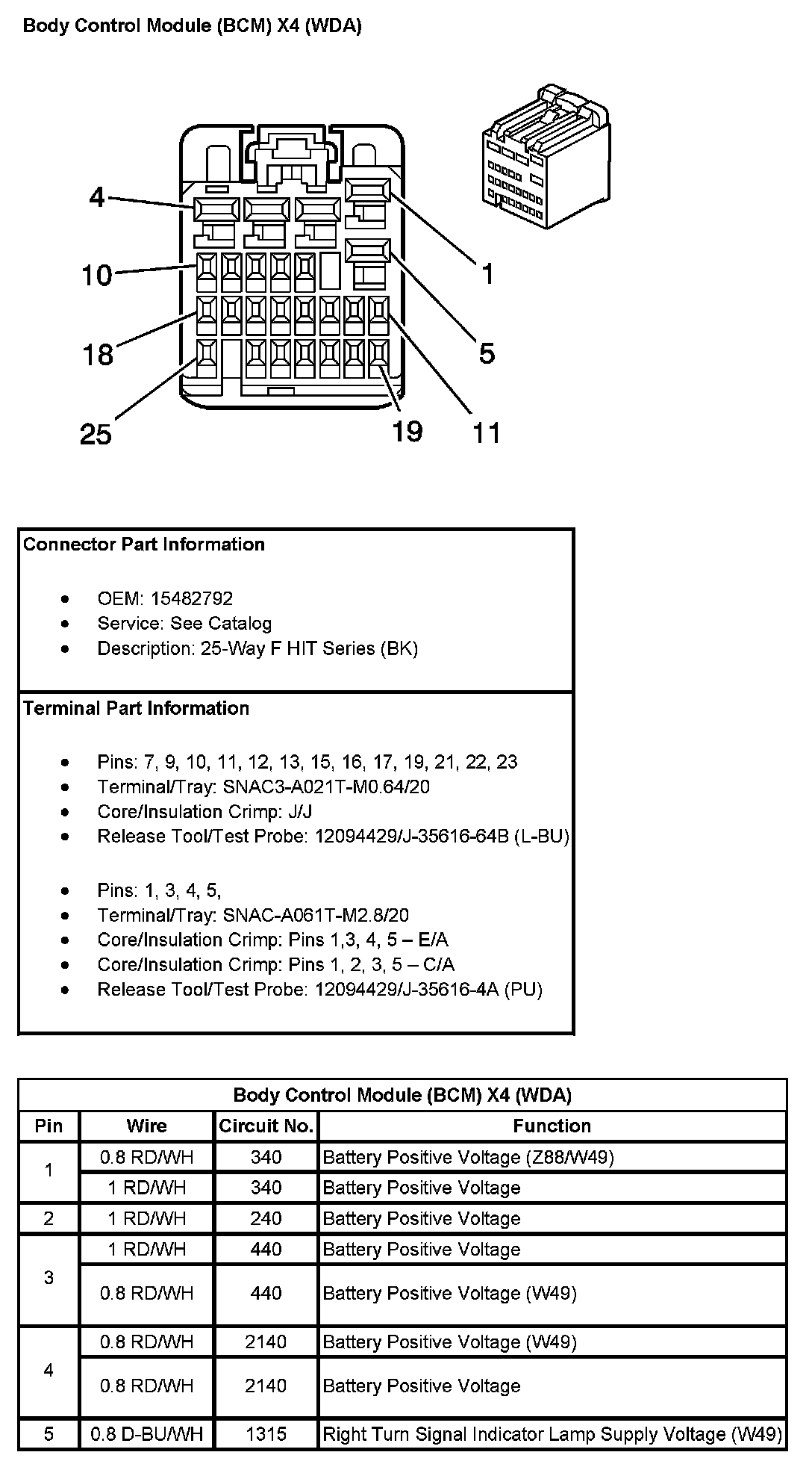 Body Control Module (BCM) X4 (With RPO Code WDA) (Pin 1 To 5):