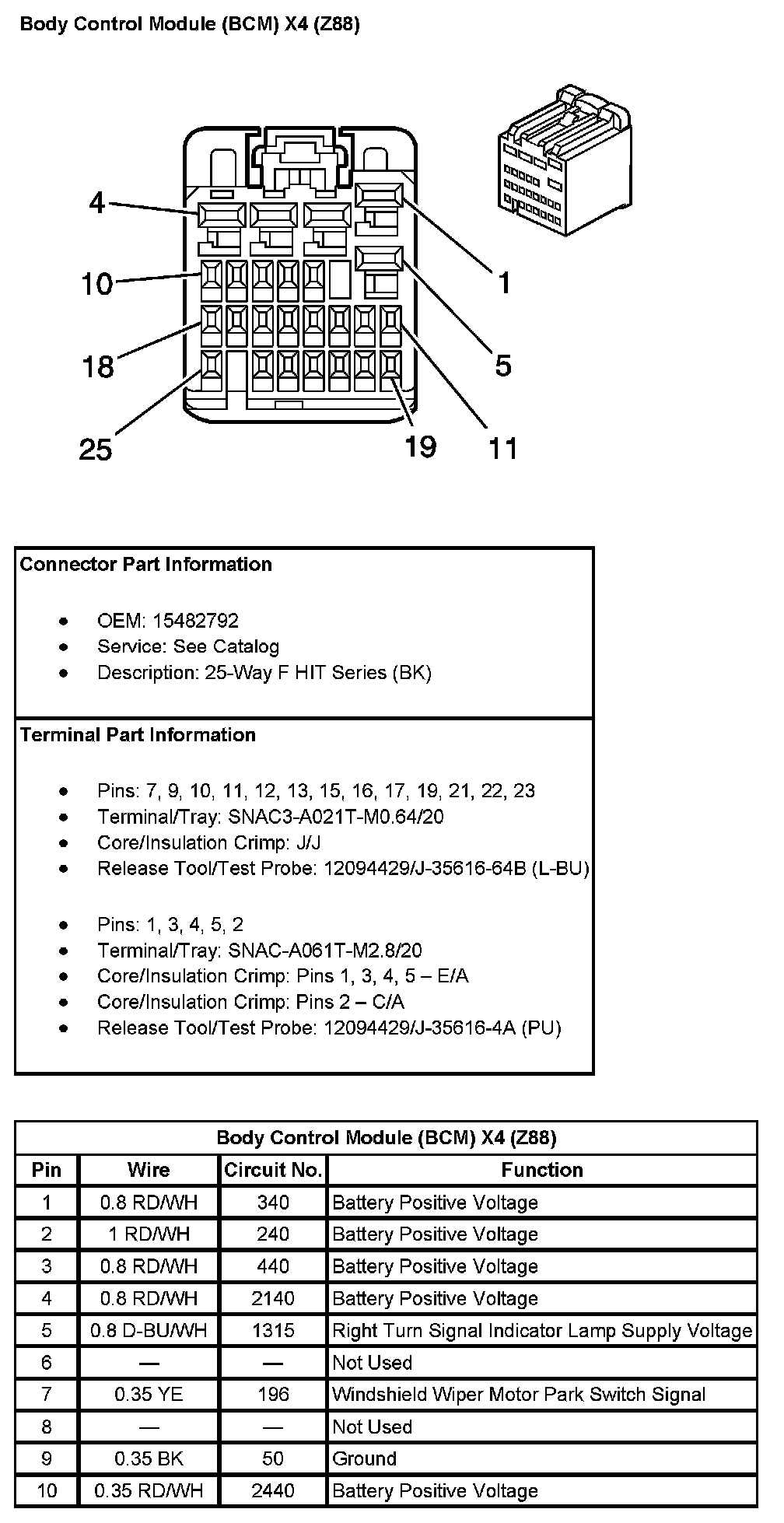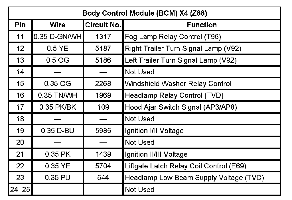 Body Control Module (BCM) X4 (With RPO Code Z88) (Pin 11 To 25):