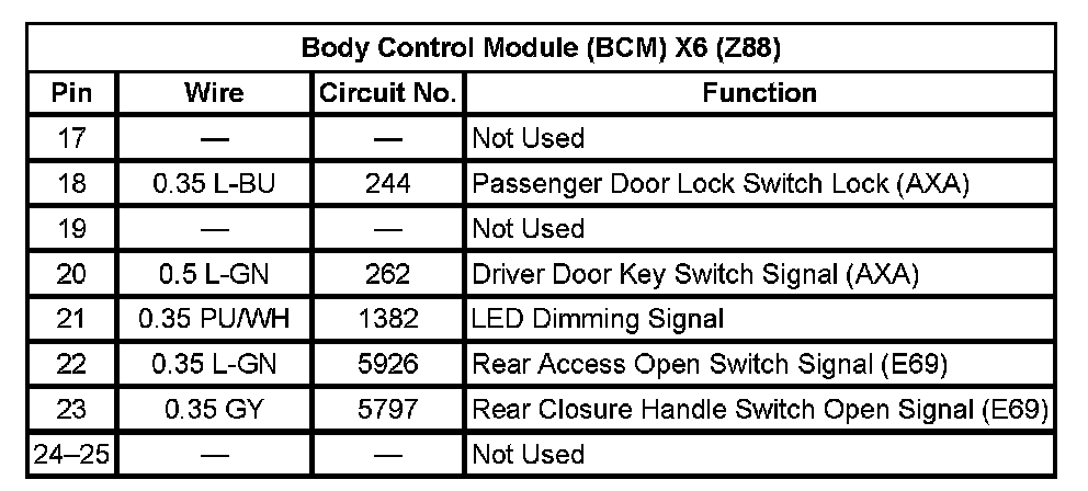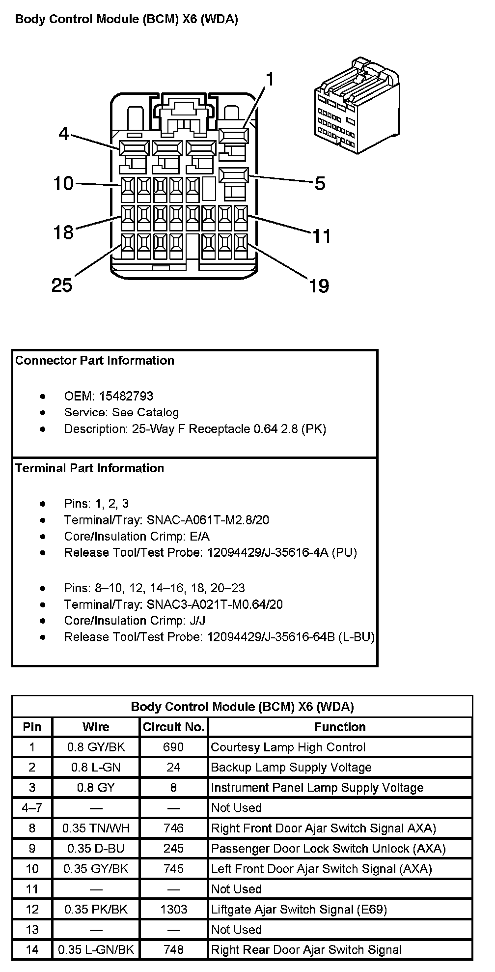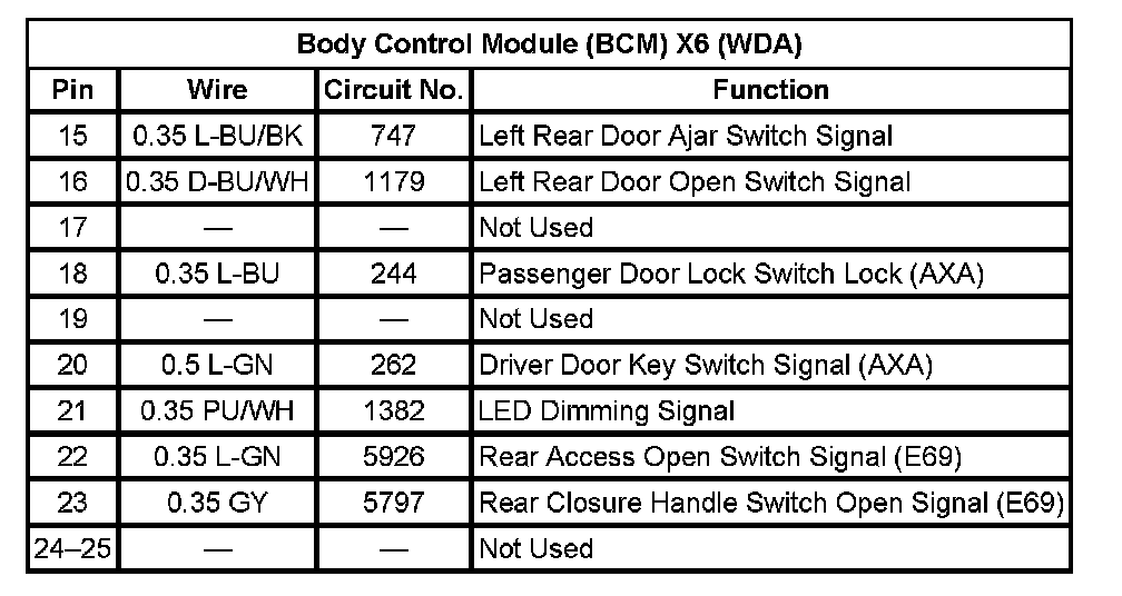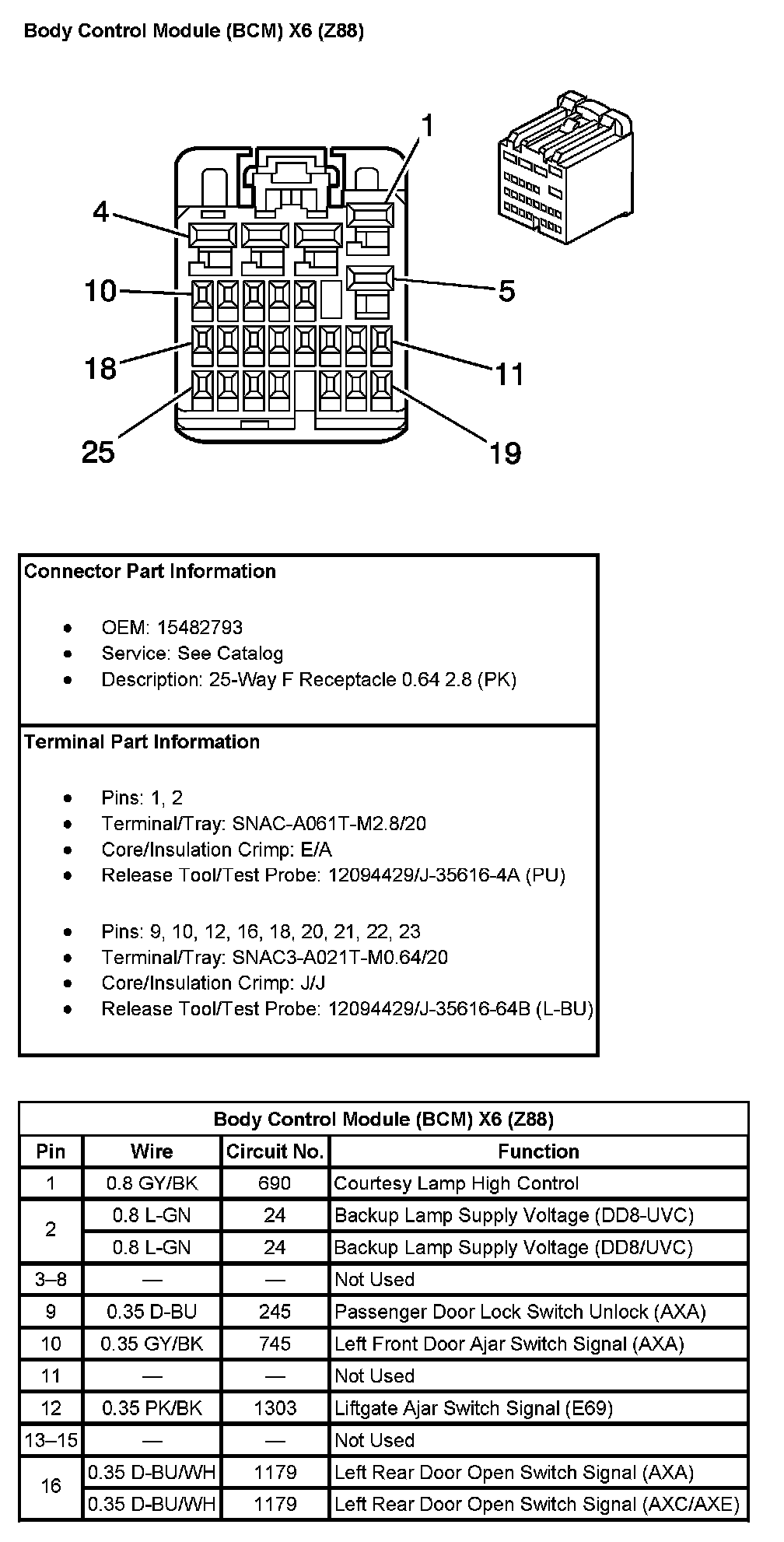 Body Control Module (BCM) X6 (With RPO Code WDA) (Pin 15 To 25):
