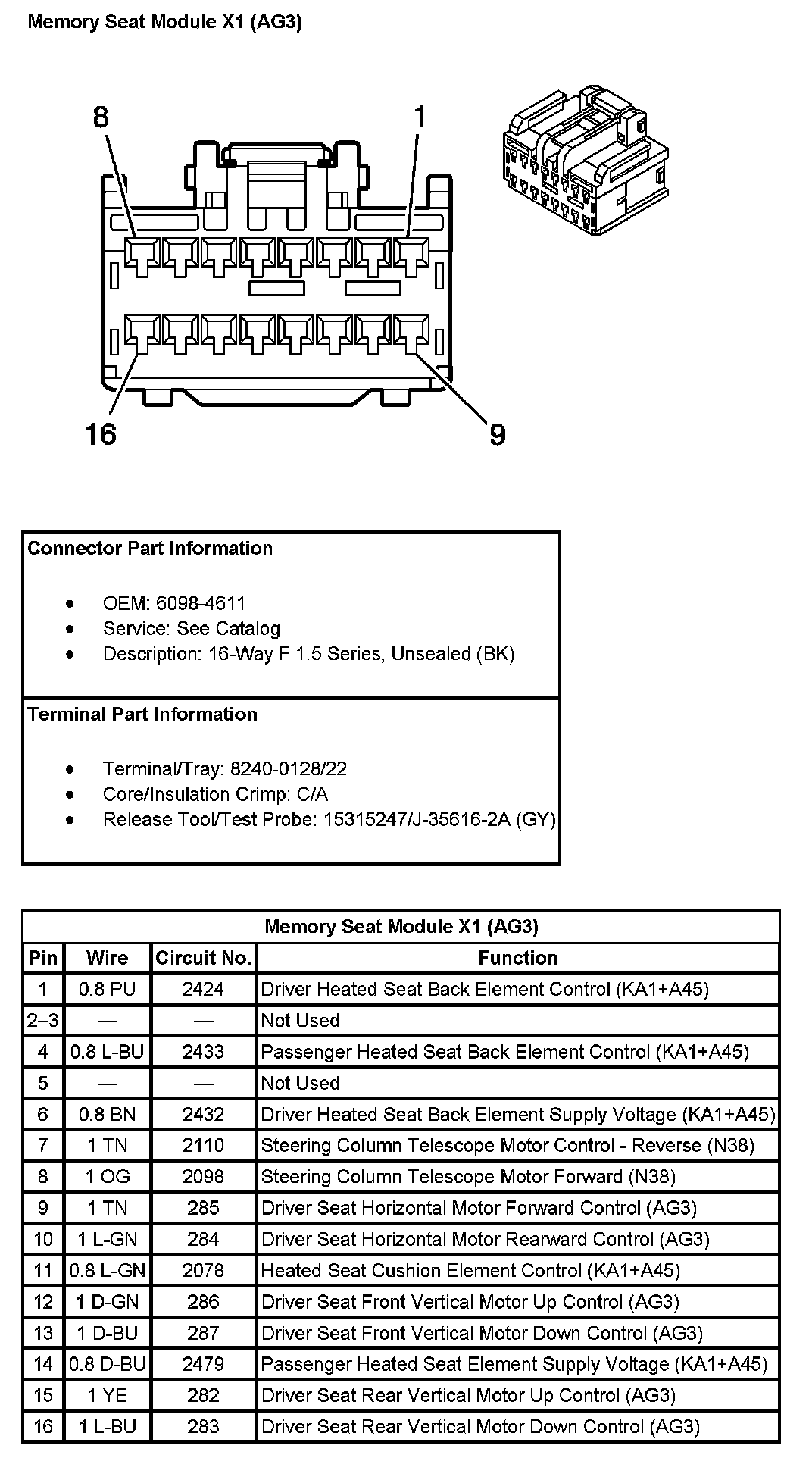Memory Seat Module X1 (With RPO Code AG3):