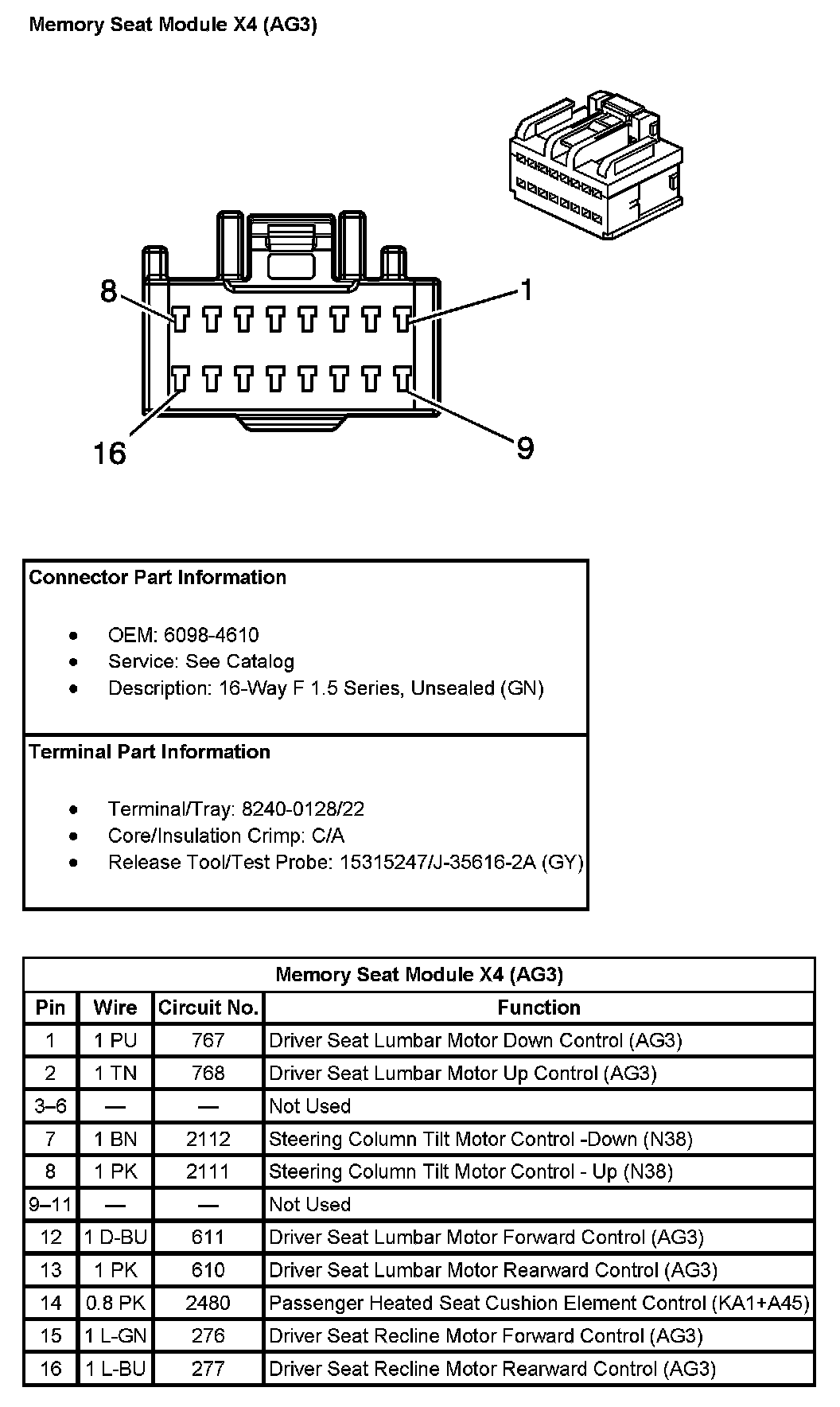 Memory Seat Module X4 (With RPO Code AG3):