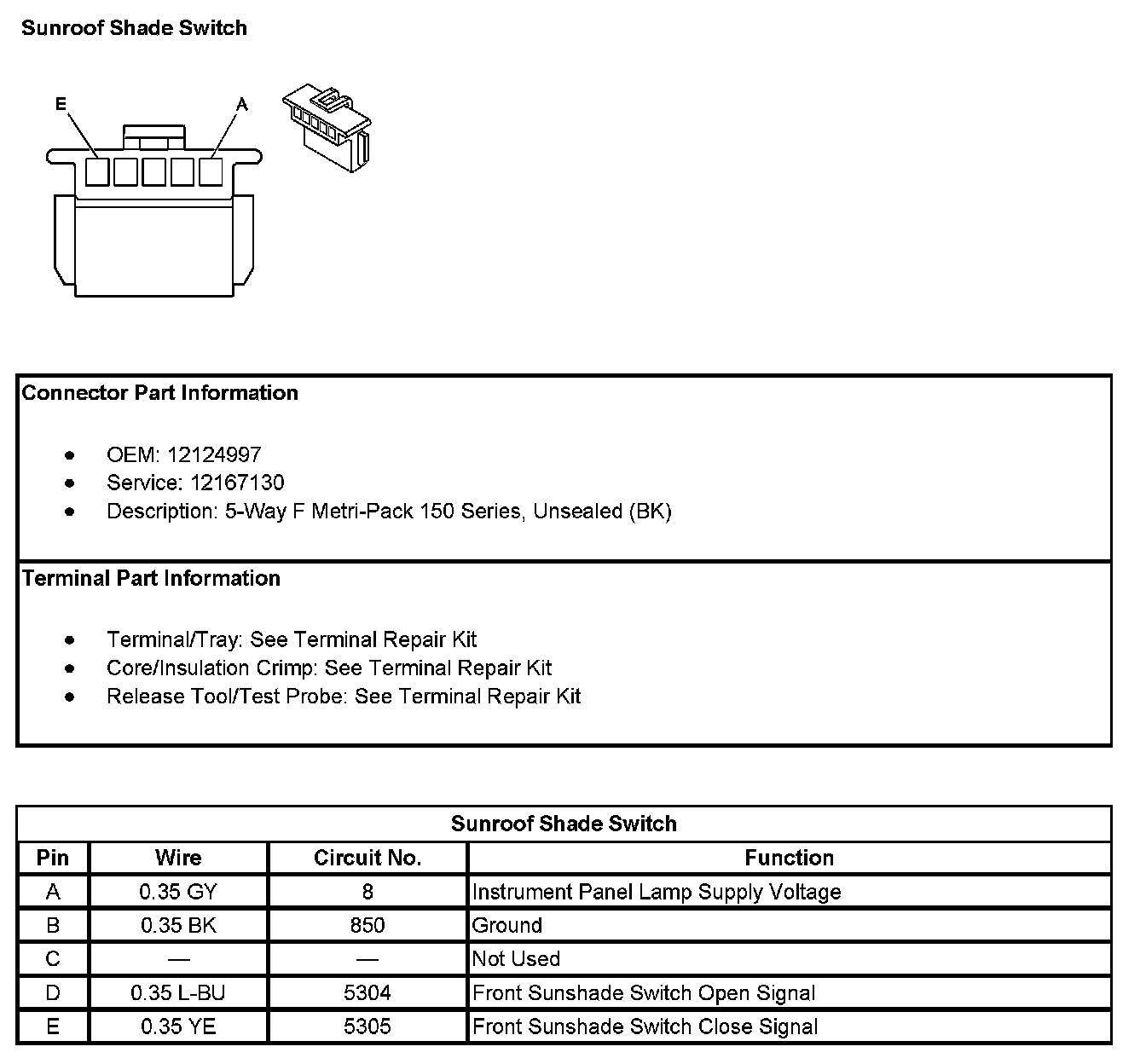Sunroof Shade Switch: