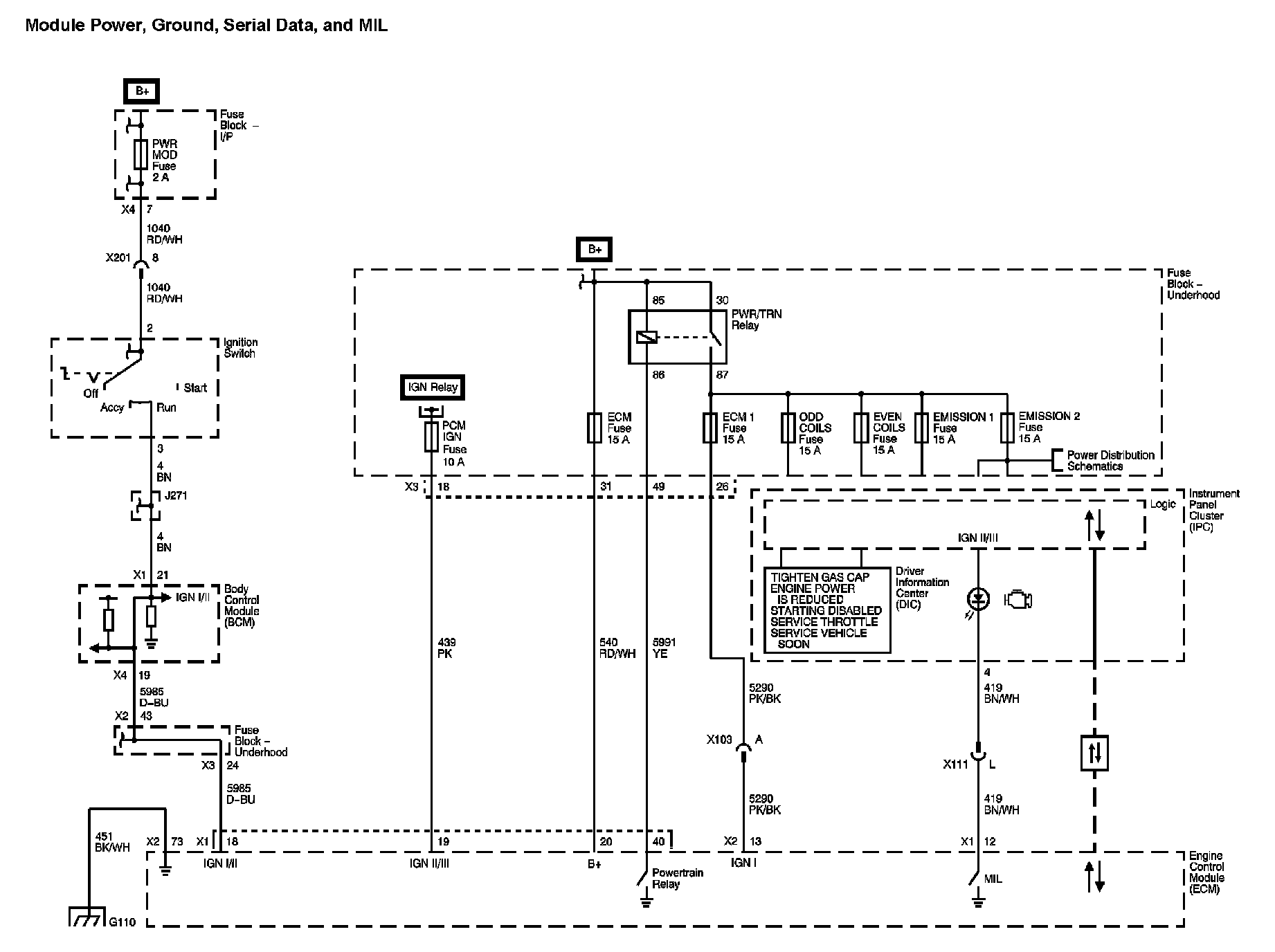 Module Power, Ground, Serial Data, and MIL