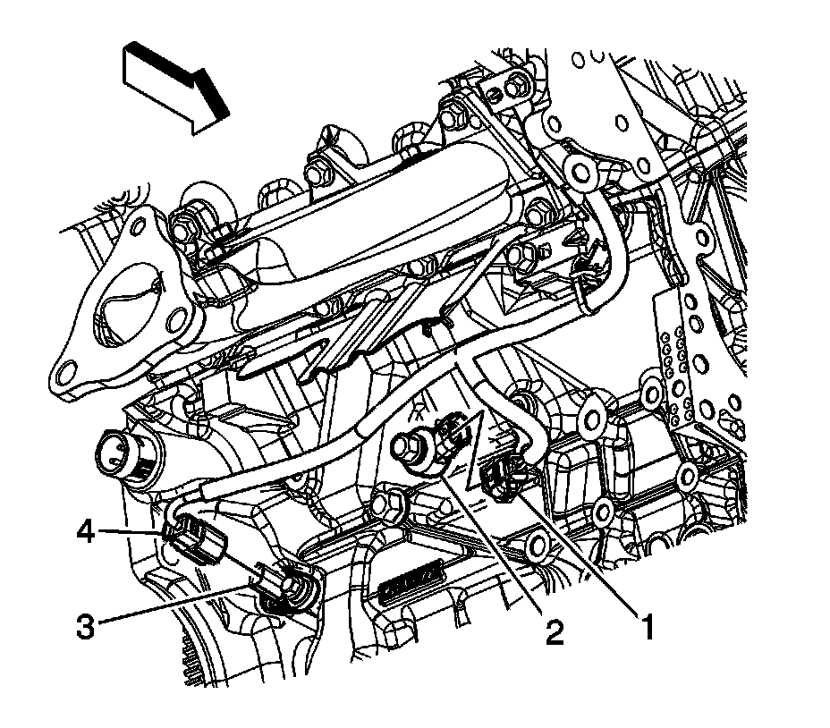 2. Disconnect the engine wiring harness electrical connector (3) from the crankshaft position (CKP) sensor (4).