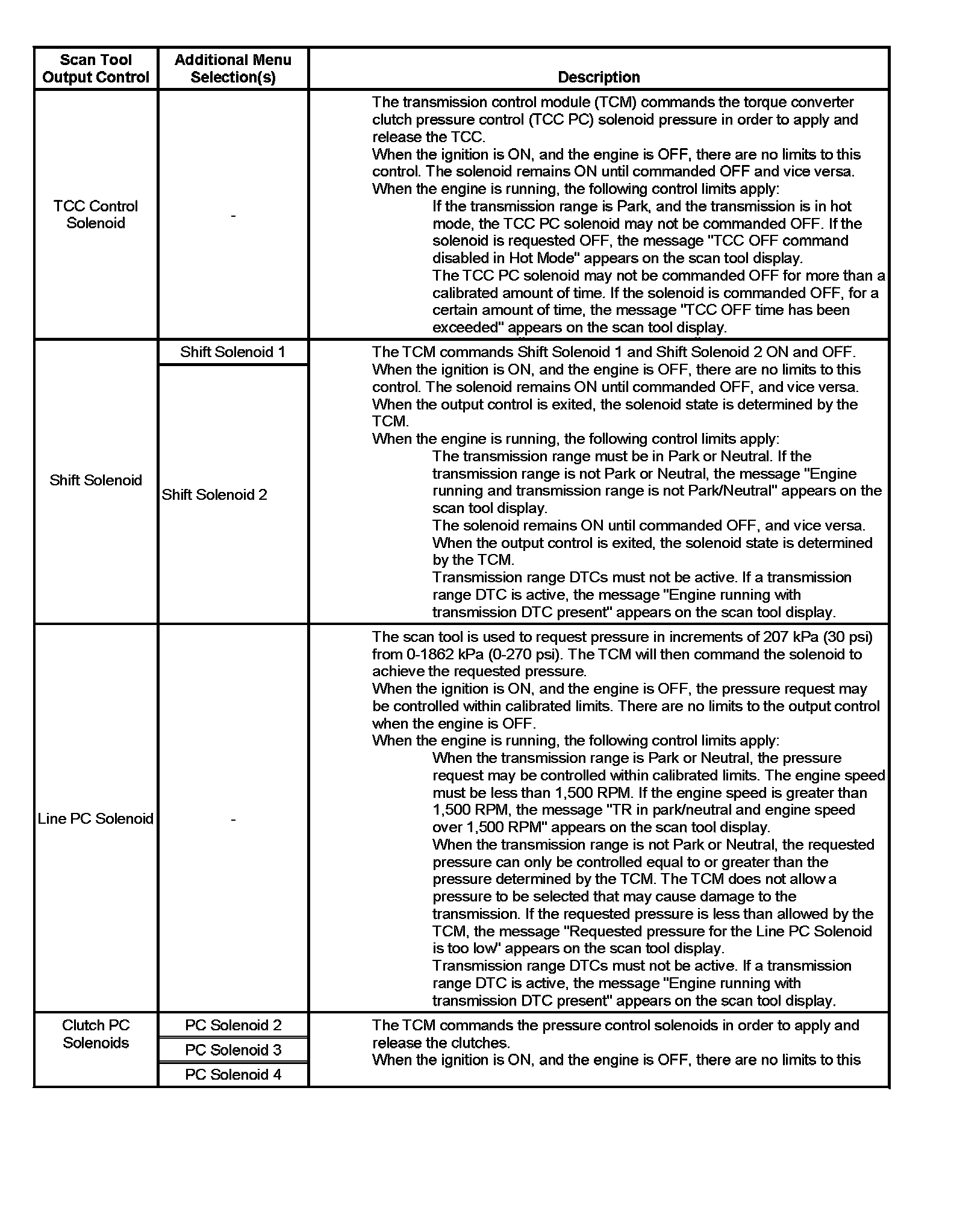 Scan Tool Output Controls