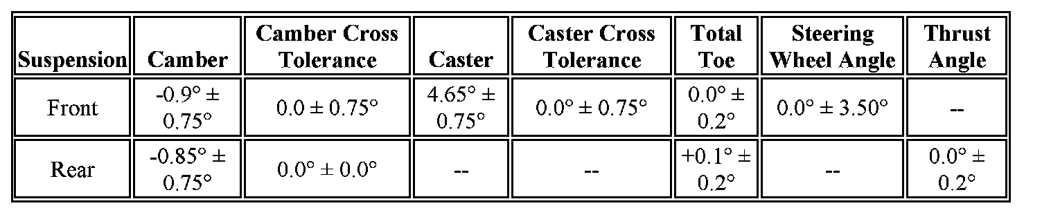 Wheel Alignment Specifications