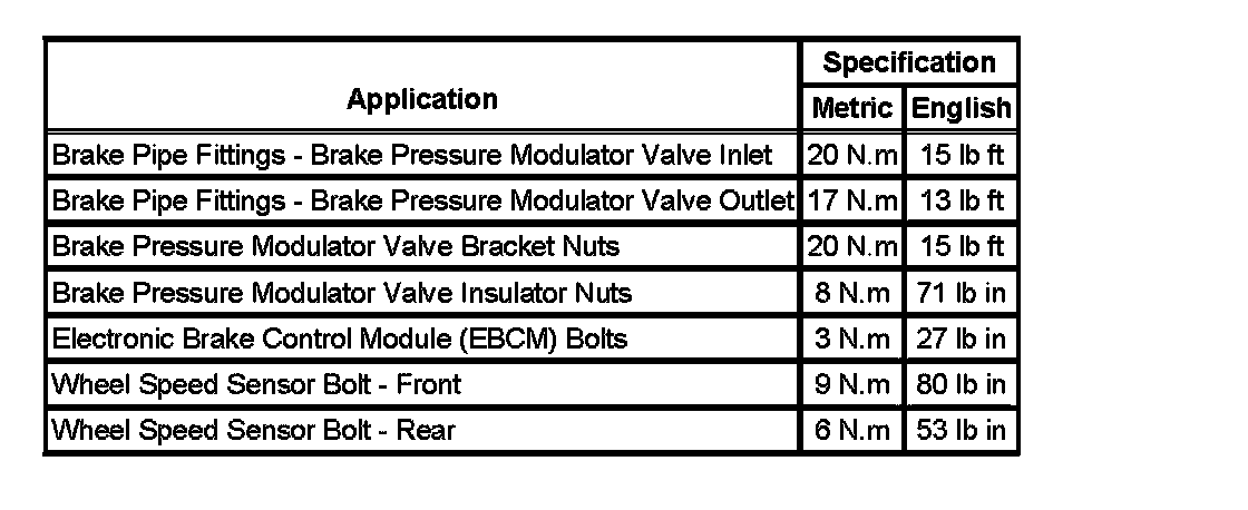 Fastener Tightening Specifications:
