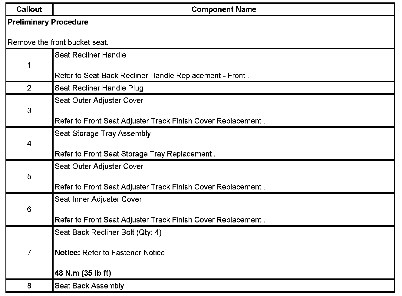 Seat Back Replacement - Front