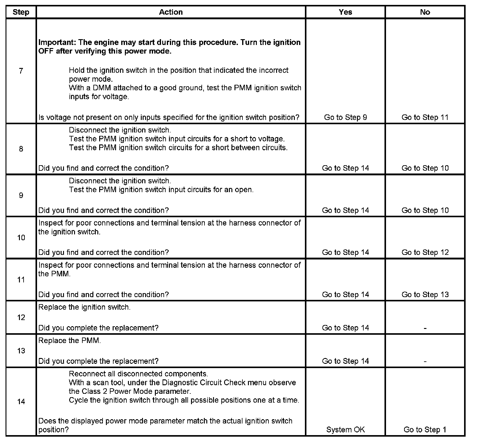 8. If any ignition switch parameters that should be inactive in the present ignition switch position are active, 2 ignition switch signal circuits may be shorted together.