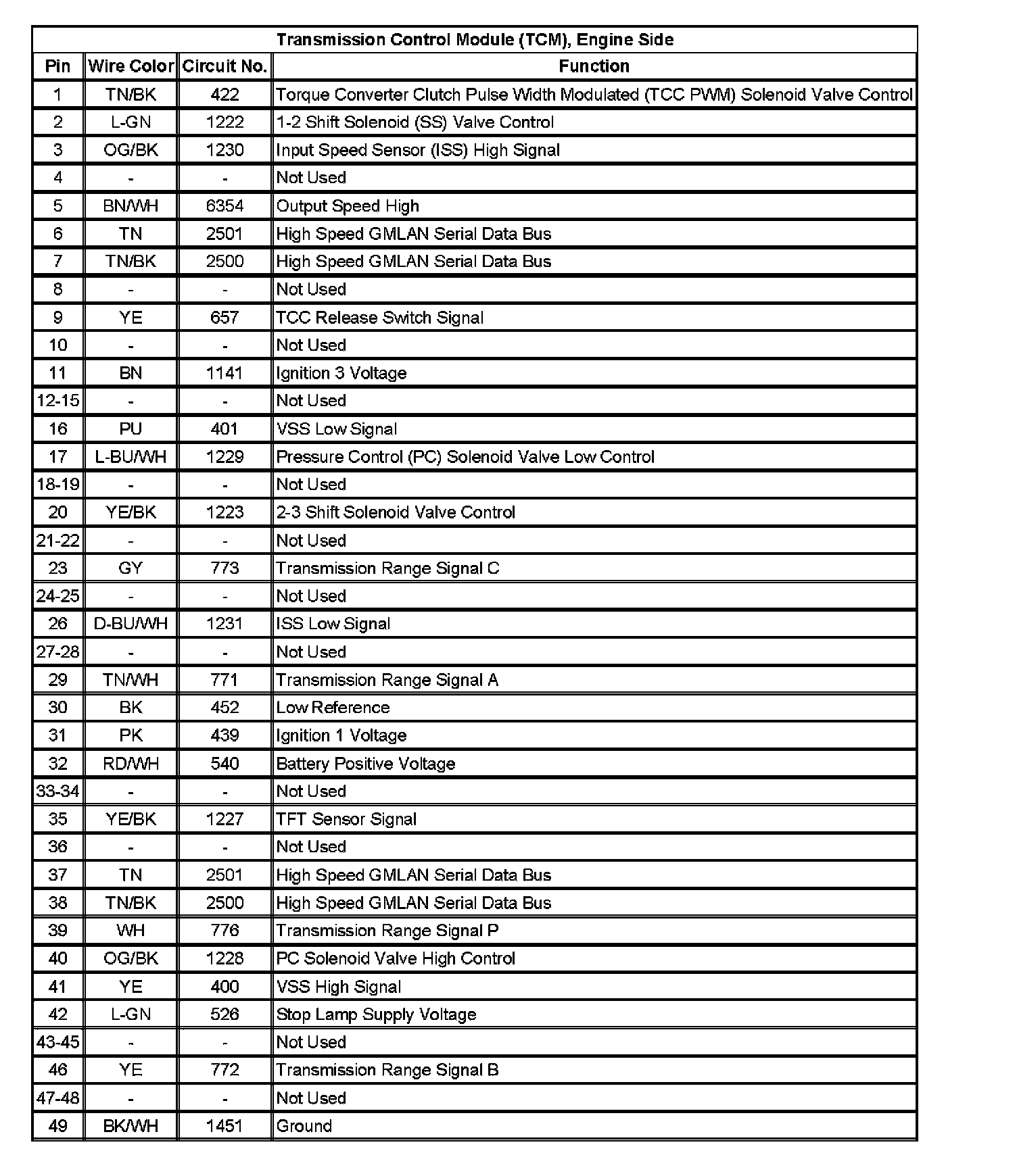 Transmission Control Module (TCM), Engine Side