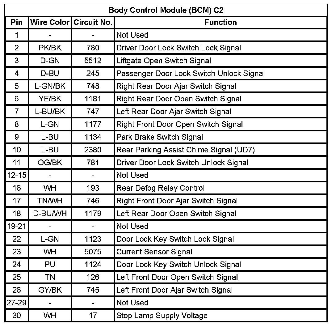 Body Control Module (BCM) C2 (Pin 1 To 30):