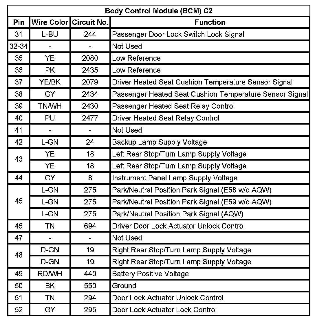 Body Control Module (BCM) C2 (Pin 31 To 52):