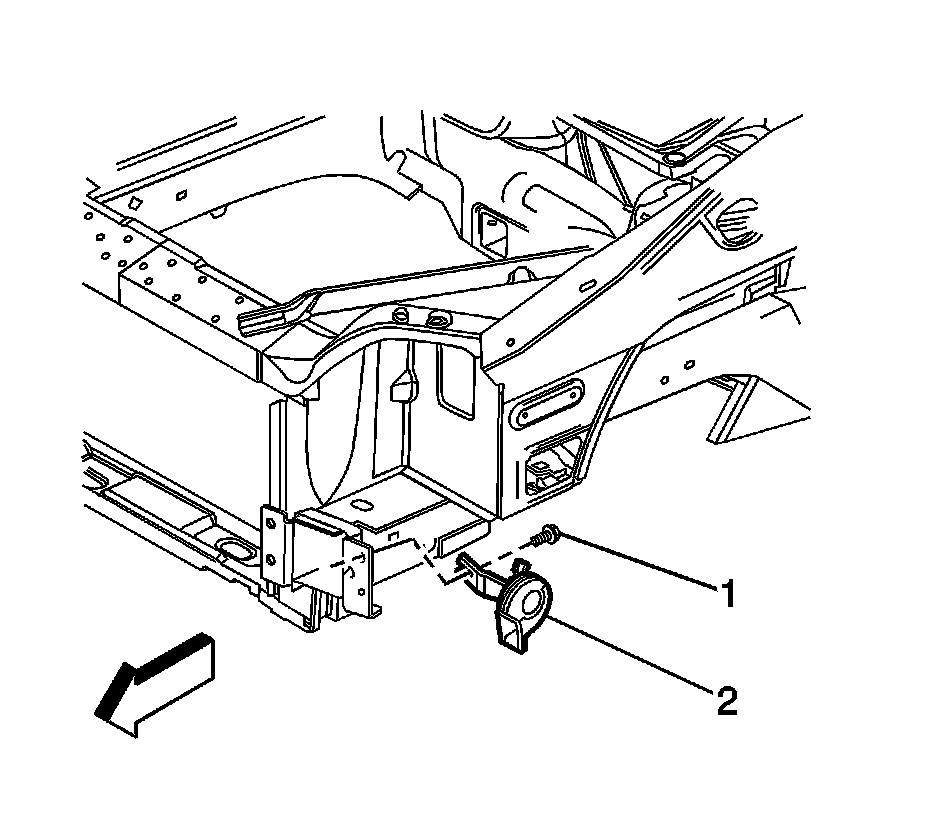 4. Remove the horn (2) from the front impact bar.