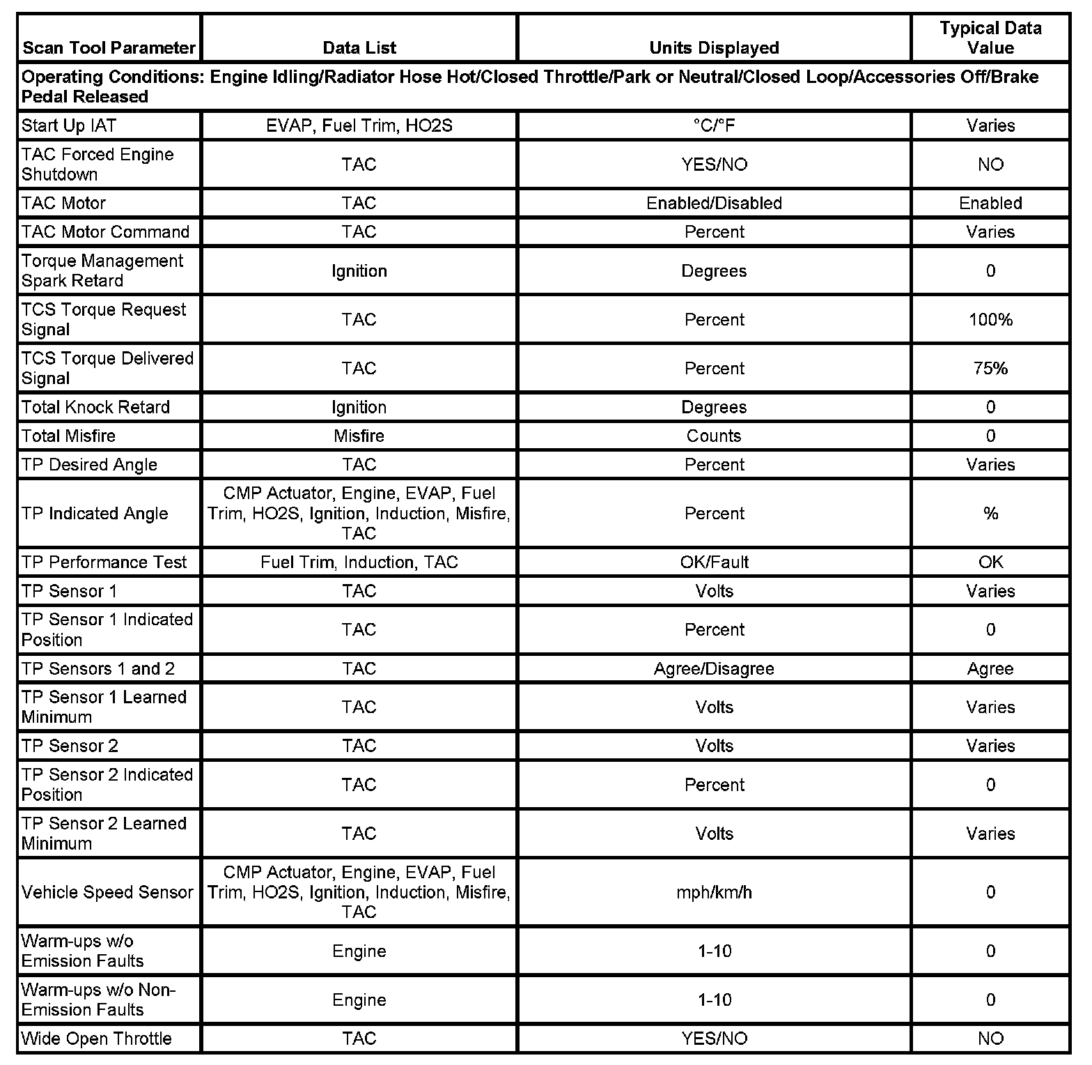 Only the parameters listed below are referenced in this service data for use in diagnosis. If all values are within the typical range described below, Refer to Symptoms - Computers and Control Systems for diagnosis. - Symptoms - Engine Controls