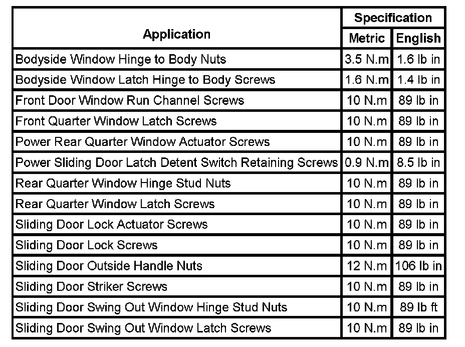 Fastener Tightening Specifications