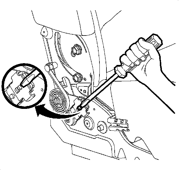 3. Disconnect the shoulder belt from the seat quick disconnect feature by using a flat-bladed tool to press the tab.