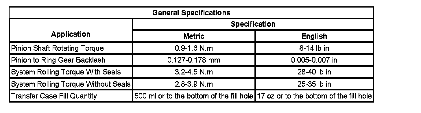 Transfer Case Specifications:
