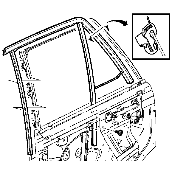 * Disengage the fixed glass post upper clip from the door frame by using a small screwdriver to press up on the clip.