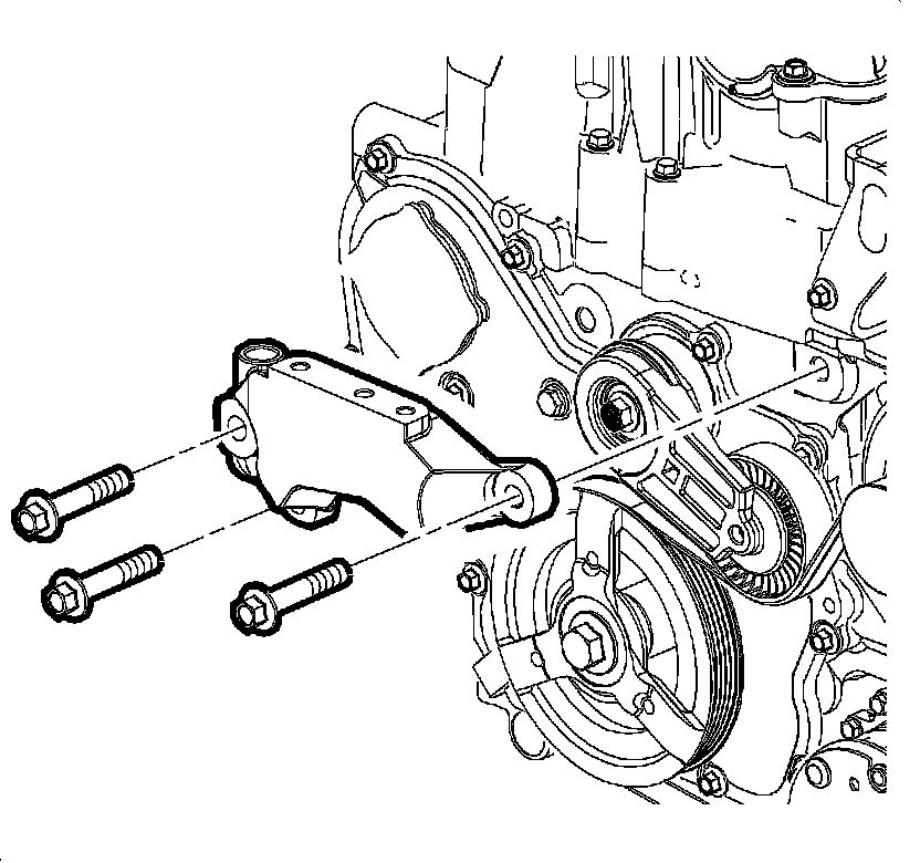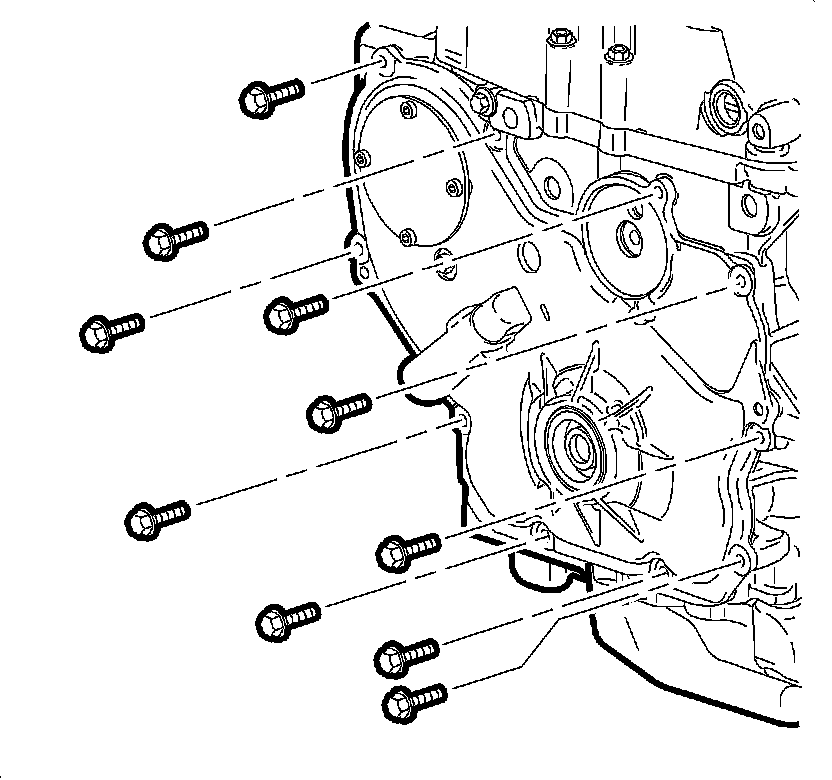 2. Install the front cover assembly bolts and lower water pump bolt.