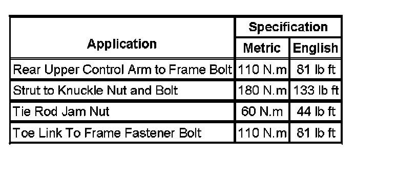 Fastener Tightening Specifications:
