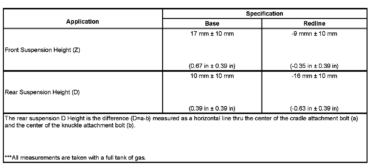 Trim Height Specifications: