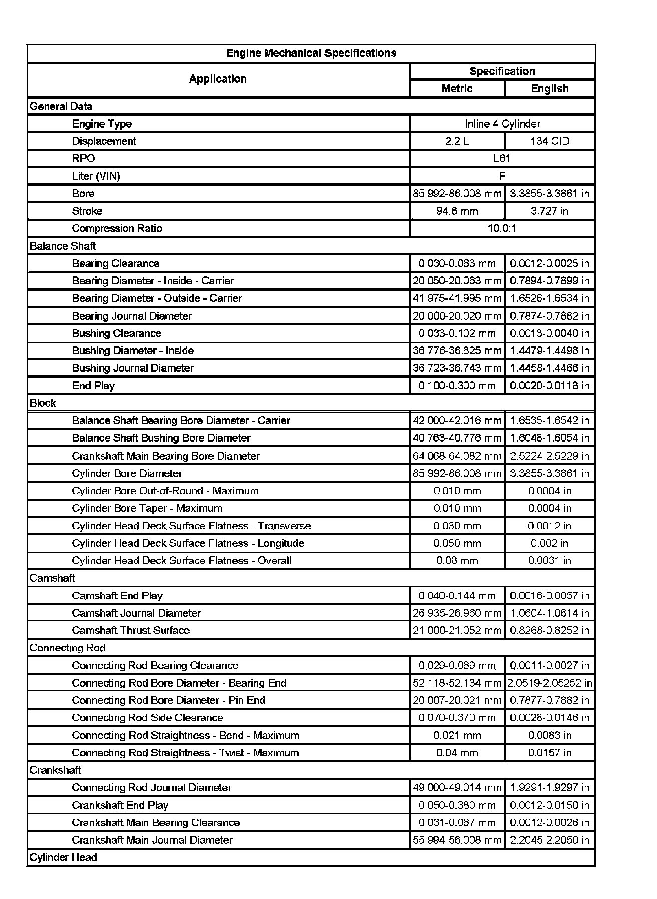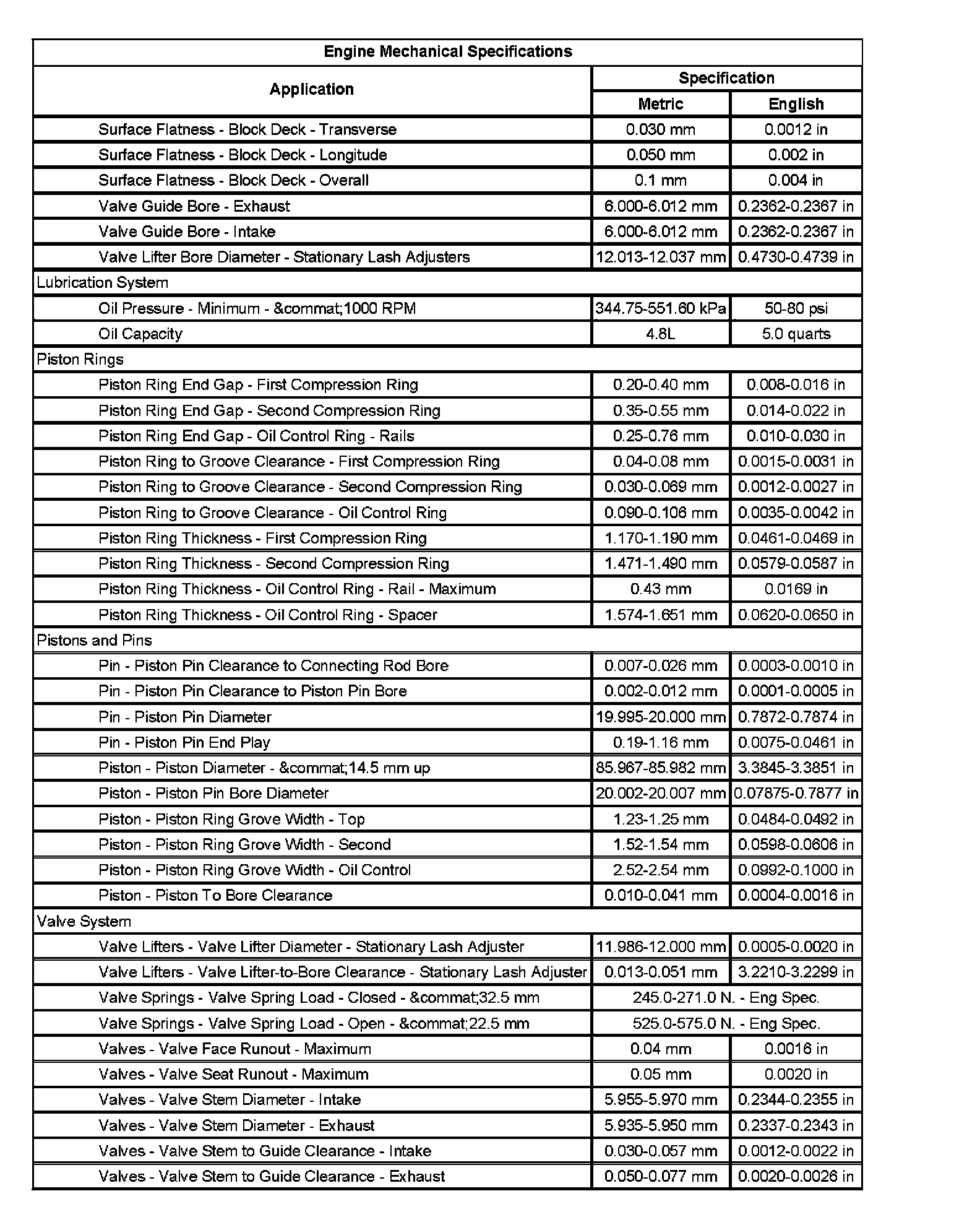 Engine Mechanical Specifications