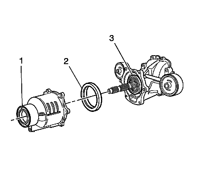 23. Inspect the pinion flange seal (1), the front seal (2) and the rear seal (3) for tears, cuts, and gouges on the seals and sealing surfaces.