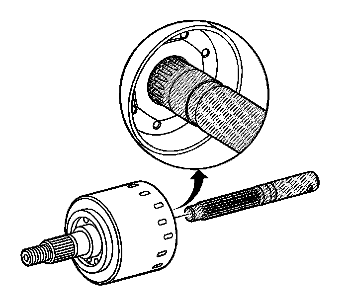 3. Align the clutch with the pump and pump bushing. Place the J 46607 in the splines of the clutch. Twist alignment tool back and forth to align the pump and bushing. With a properly aligned clutch, the grove on the J 46607 will be flush with the drum as shown. Remove the tool by pulling straight out.