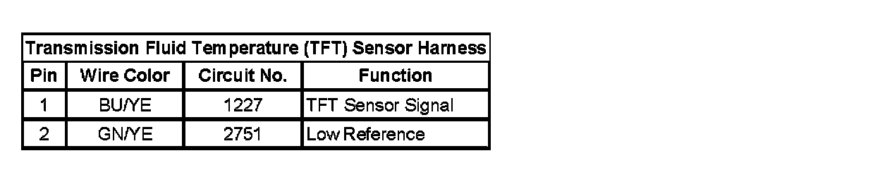 Transmission Fluid Temperature (TFT) Sensor Harness: