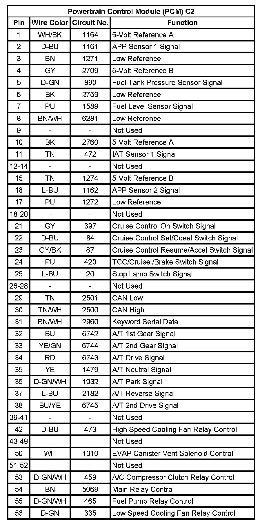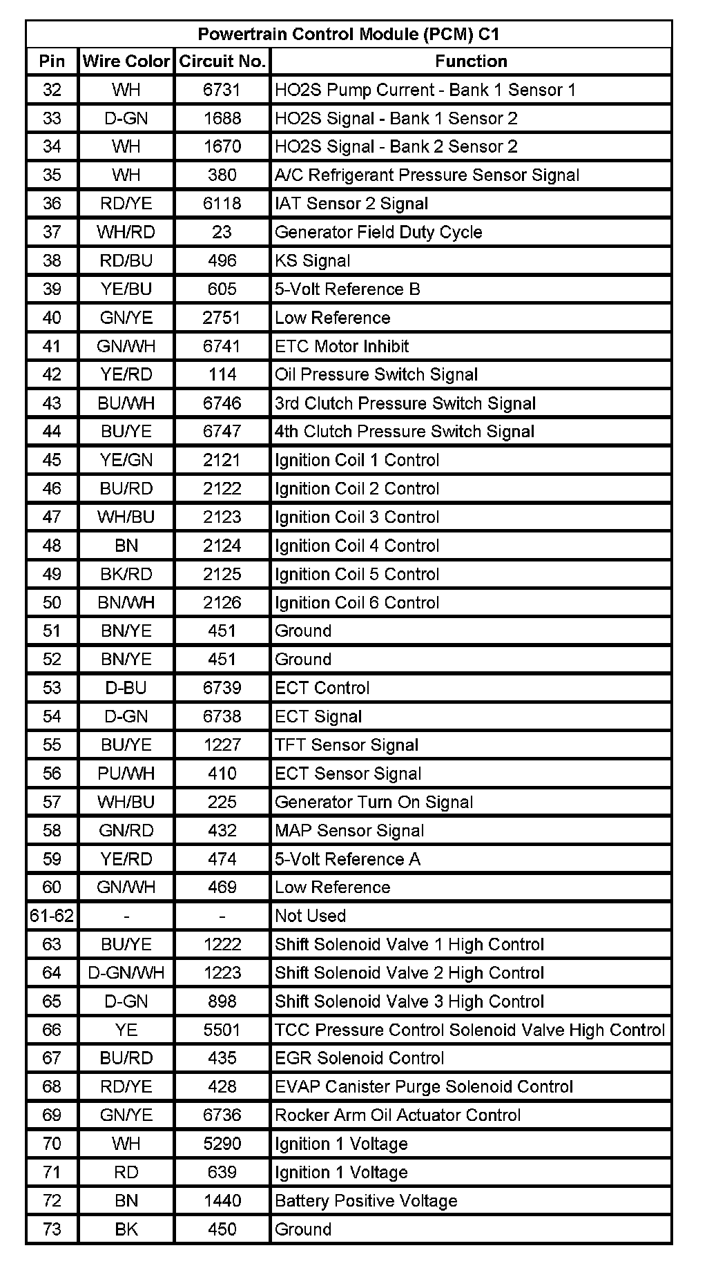 Powertrain Control Module (PCM) C1 (Pin 32 To 73):