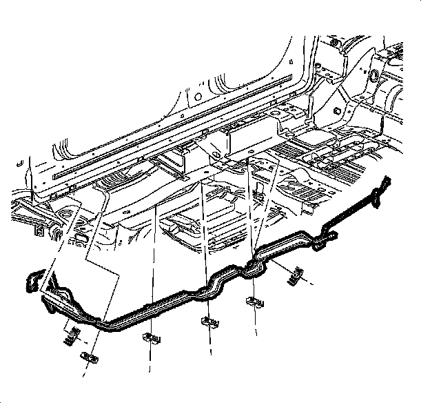 2. Install the fuel and EVAP lines into underbody retainers. Make sure the lines are properly routed and attach retainers to the vehicle.