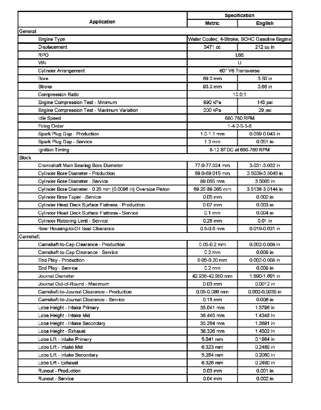Engine Mechanical Specifications (Part 3):