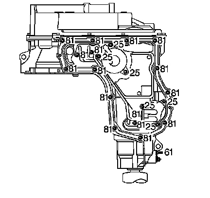 Install the twelve bottom pan bolts (81).