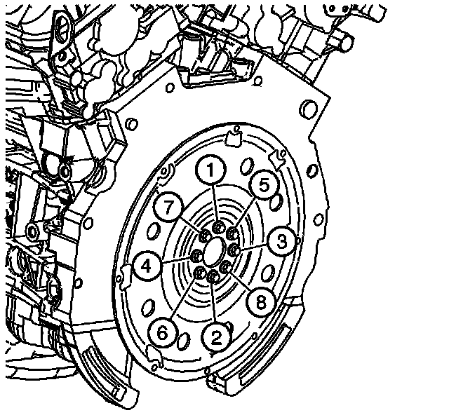 Tighten the flywheel bolts in sequence to 74 N.m (54 lb ft).