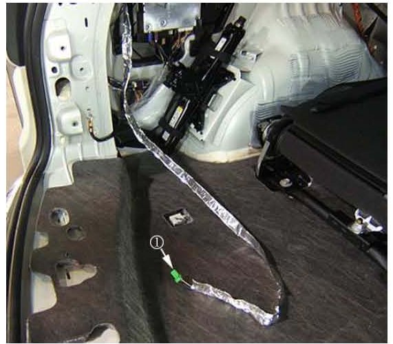 13. Separate the RCDLR circuit wires: 1840 (Red/White), 5060 (Dark Green) and 650 (Black) from the left rear body harness, starting at the connector side of the harness until you get to the Y-section (1) of the rear body harness.